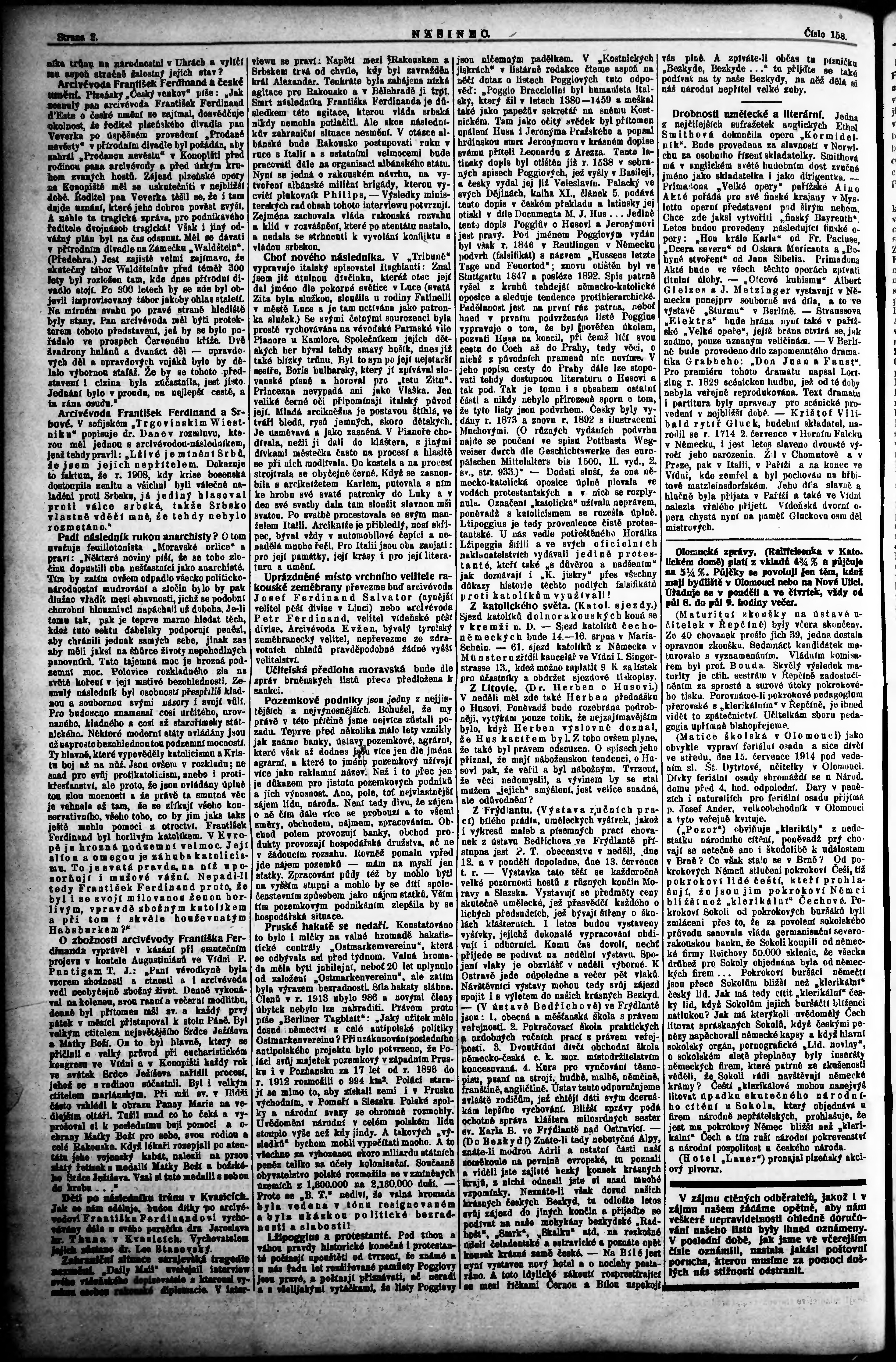 * Datum vydání výtisku: 11.7.1914 Číslo výtisku: 158