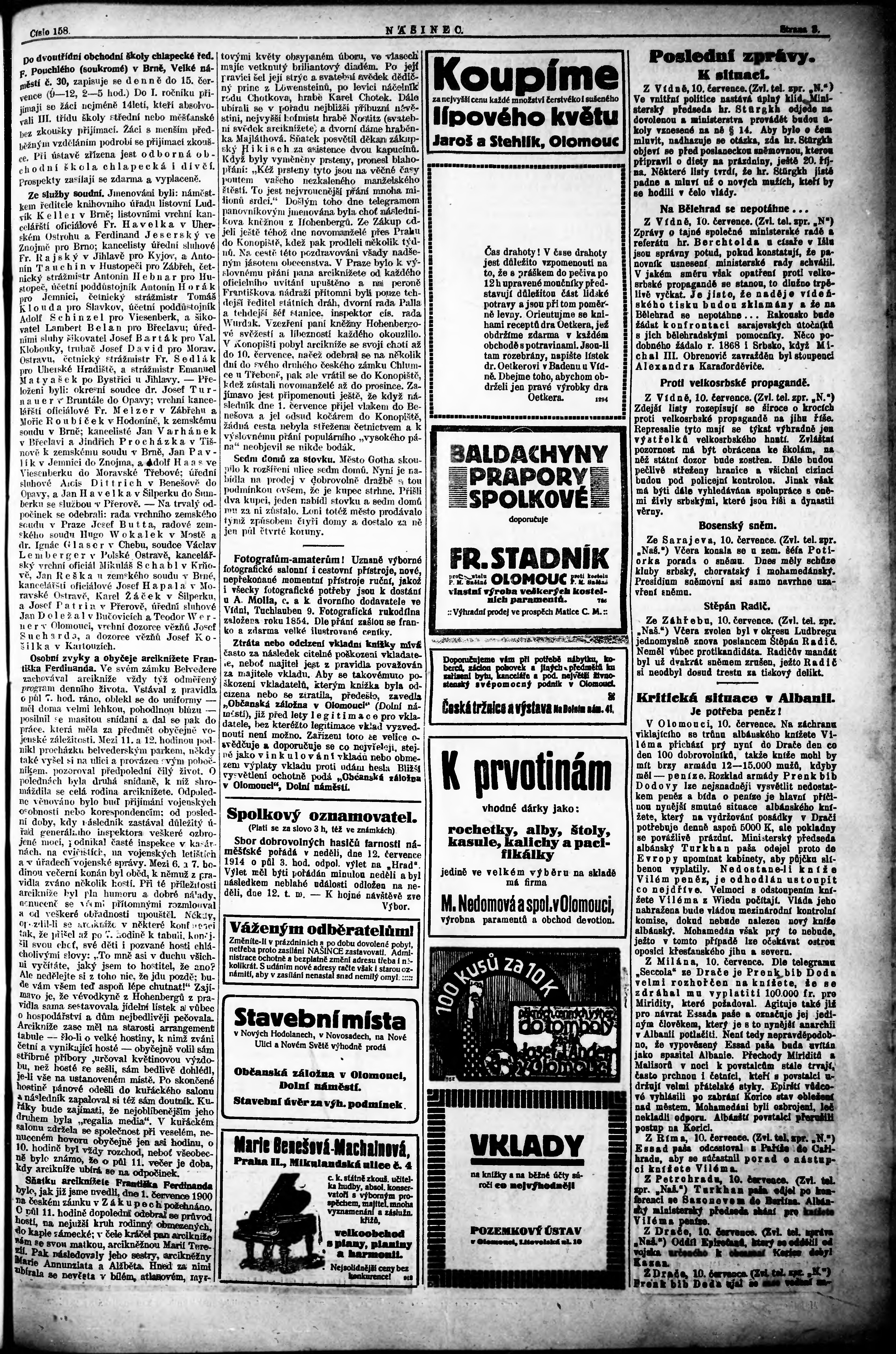 * Datum vydání výtisku: 11.7.1914 Číslo výtisku: 158