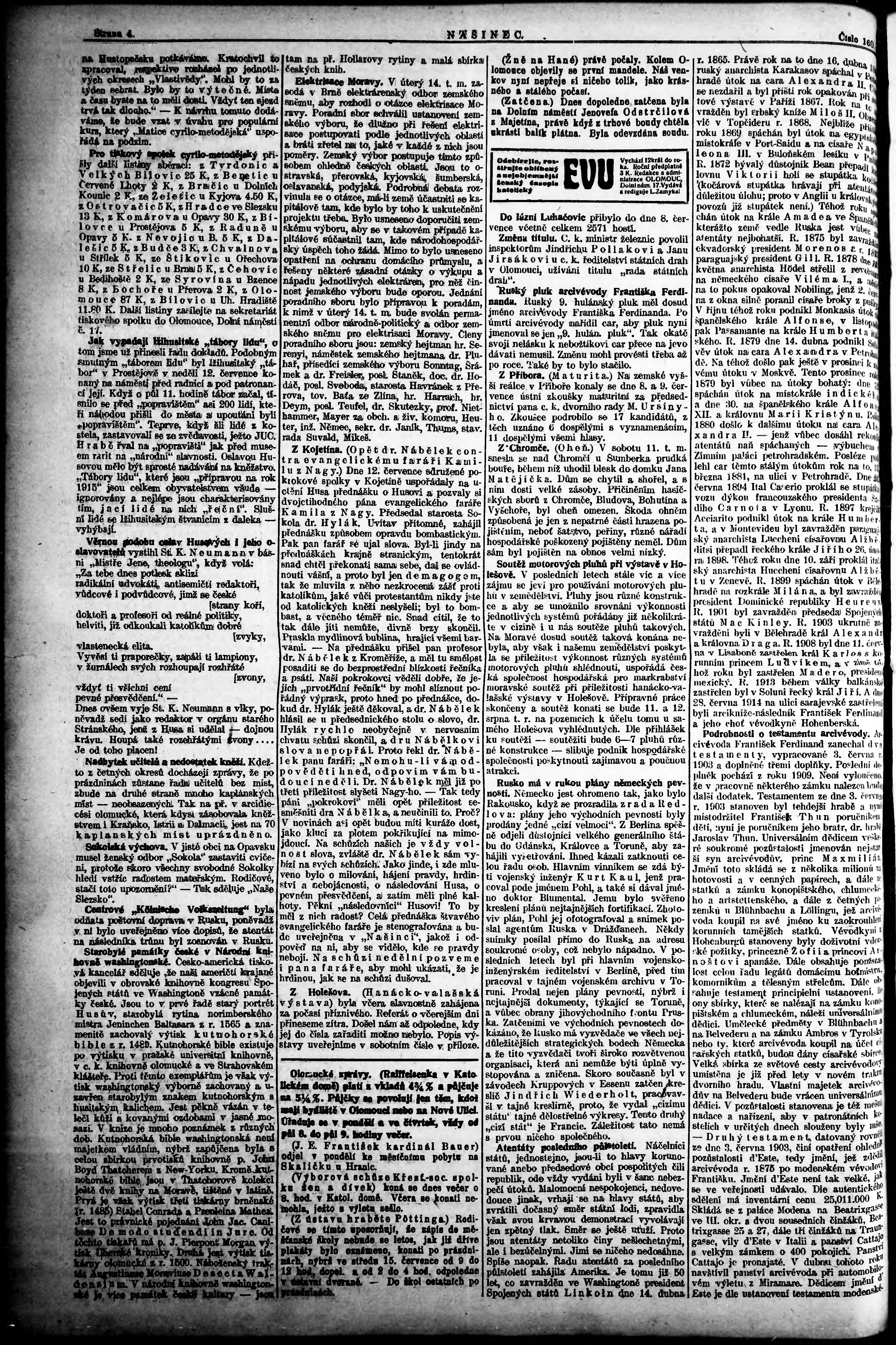 * Datum vydání výtisku: 14.7.1914 Číslo výtisku: 160