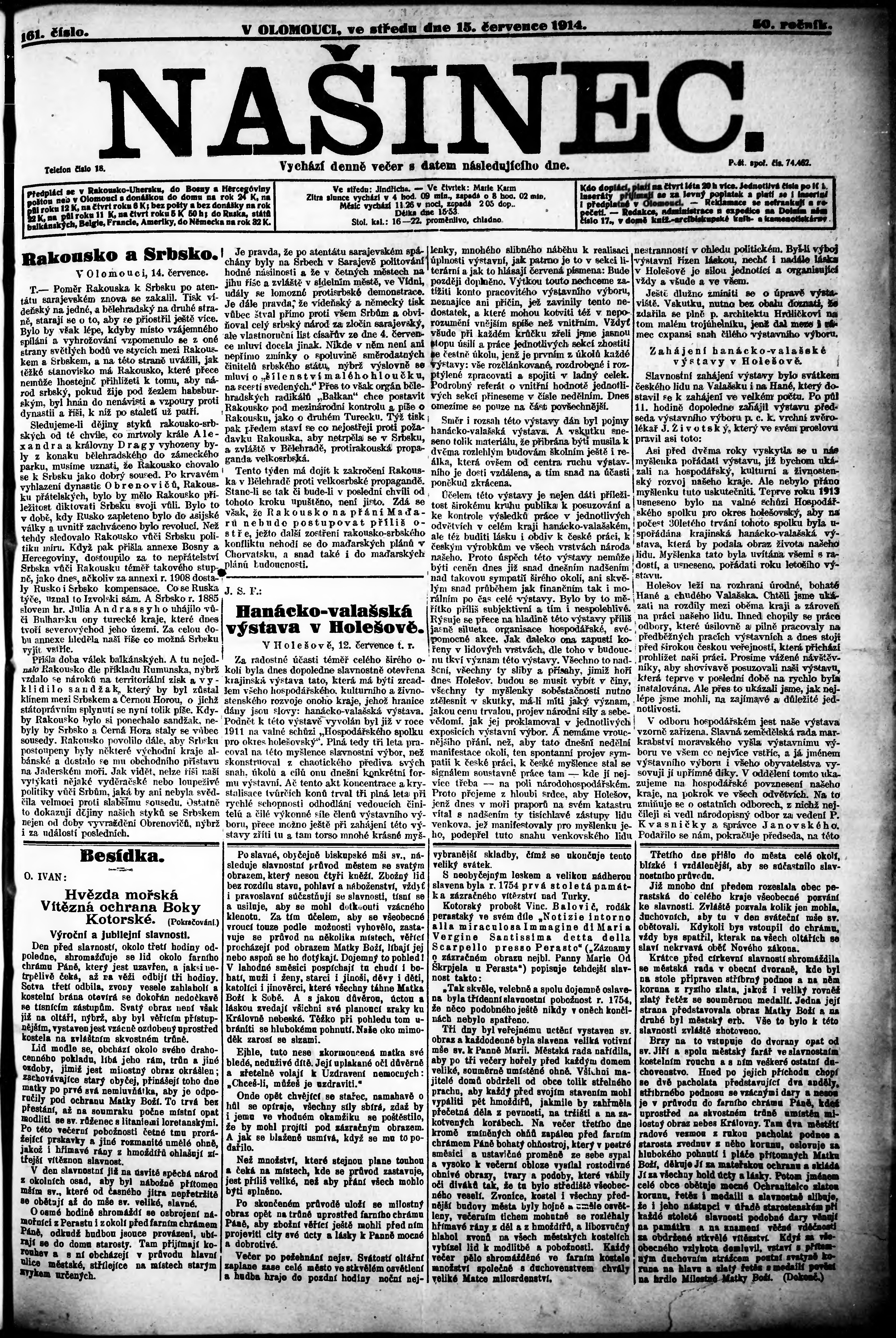 * Datum vydání výtisku: 15.7.1914 Číslo výtisku: 161