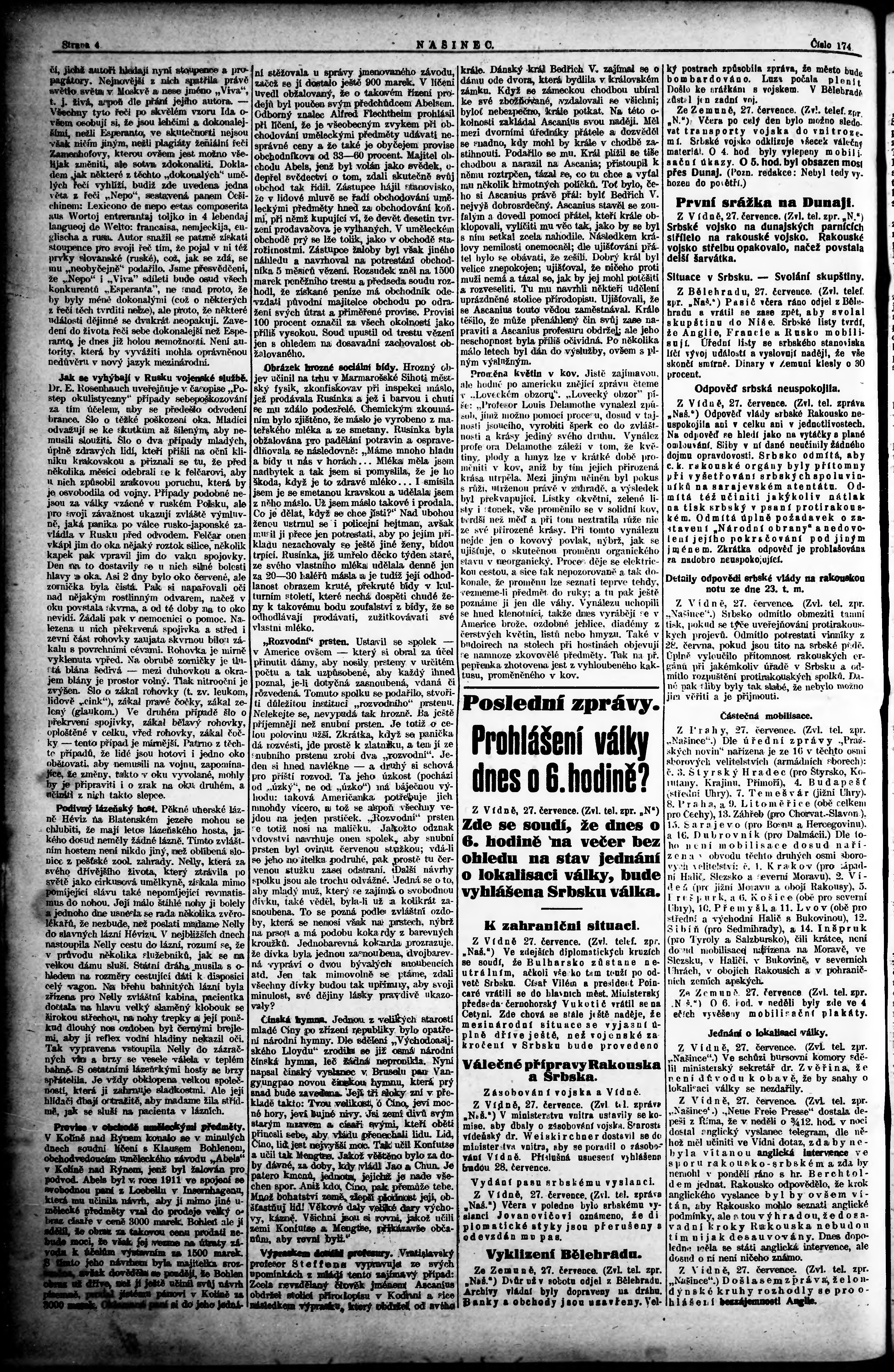 * Datum vydání výtisku: 28.7.1914 Číslo výtisku: 174