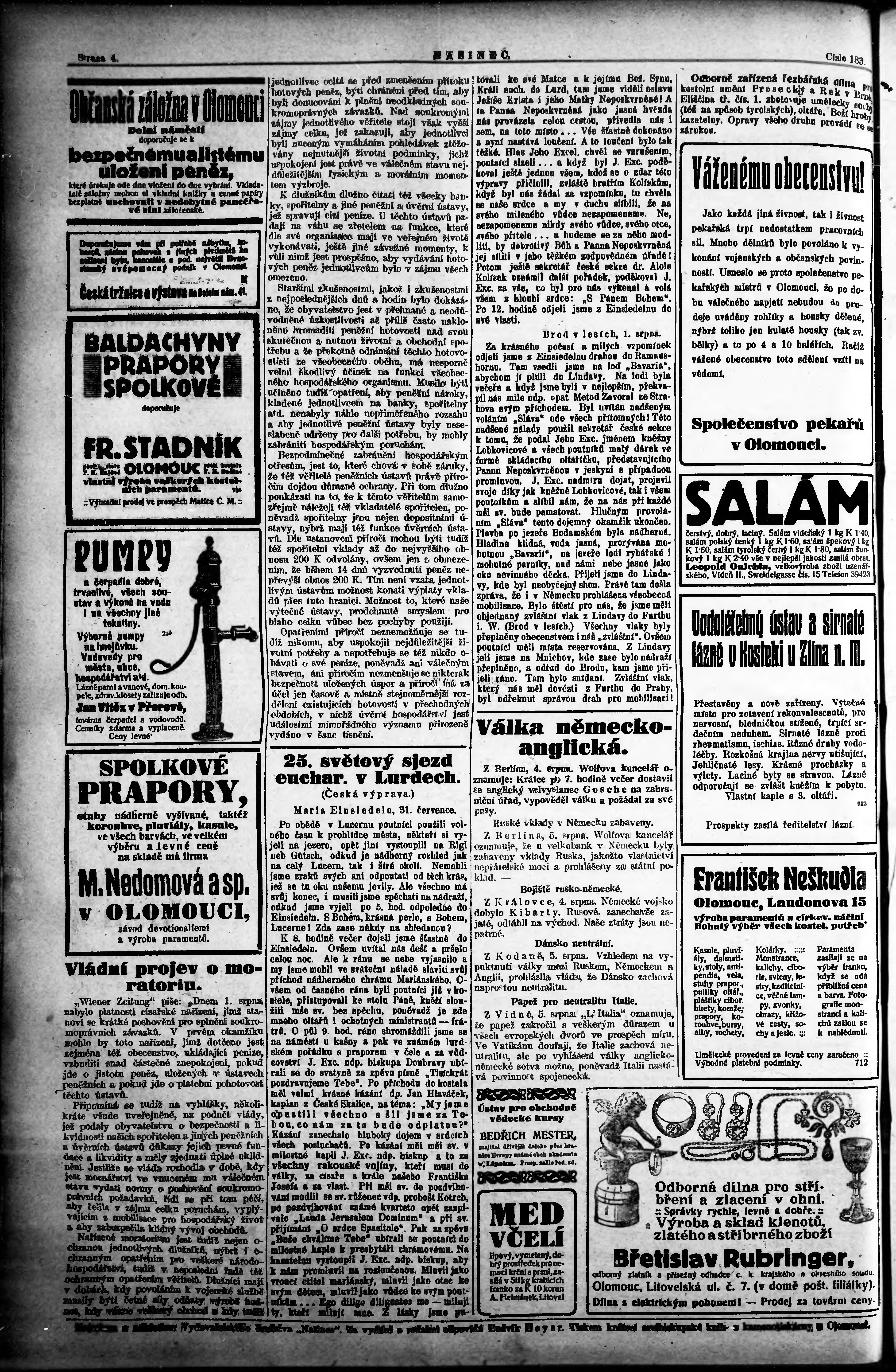 * Datum vydání výtisku: 7.8.1914 Číslo výtisku: 184