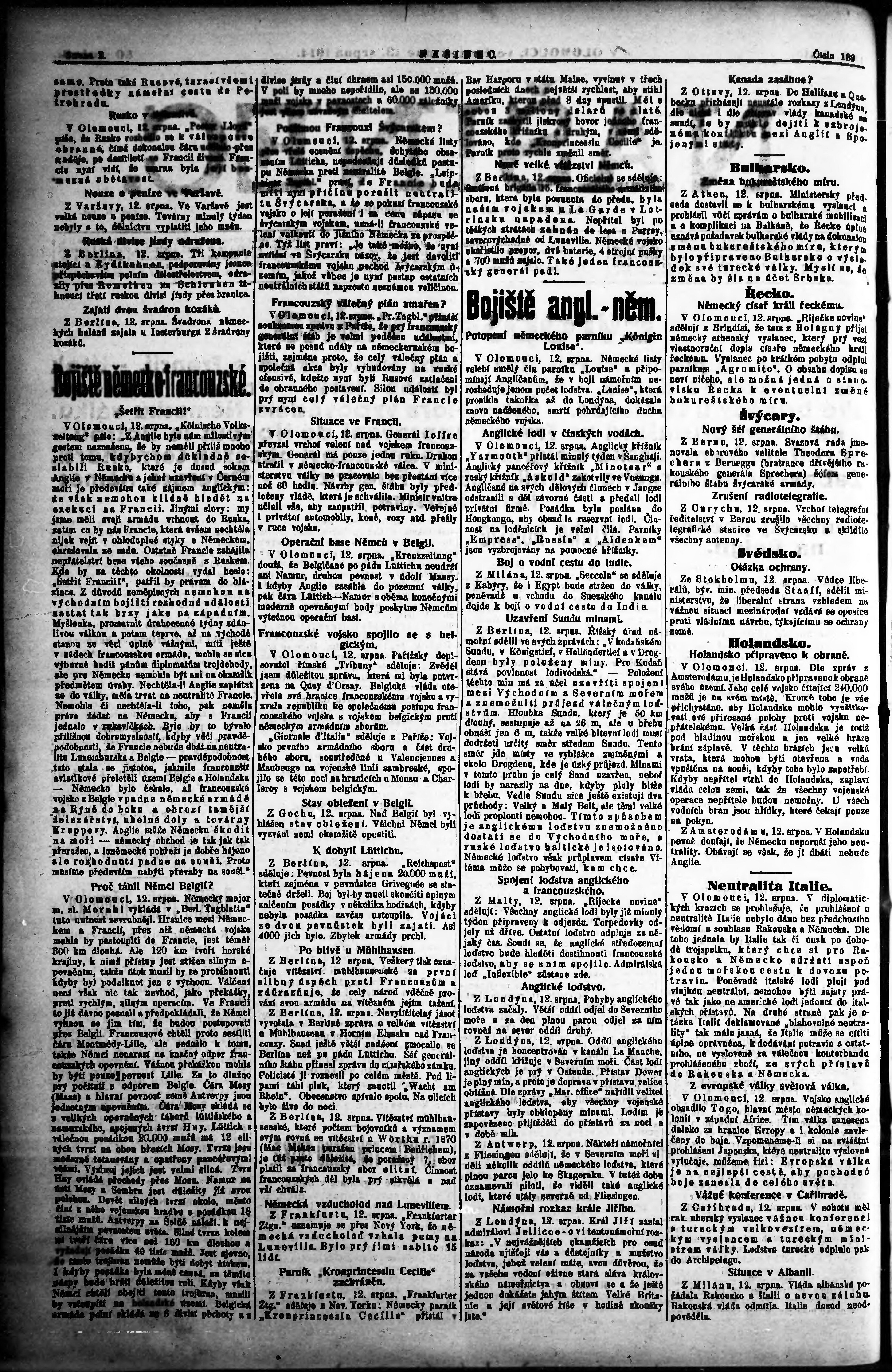 * Datum vydání výtisku: 13.8.1914 Číslo výtisku: 189