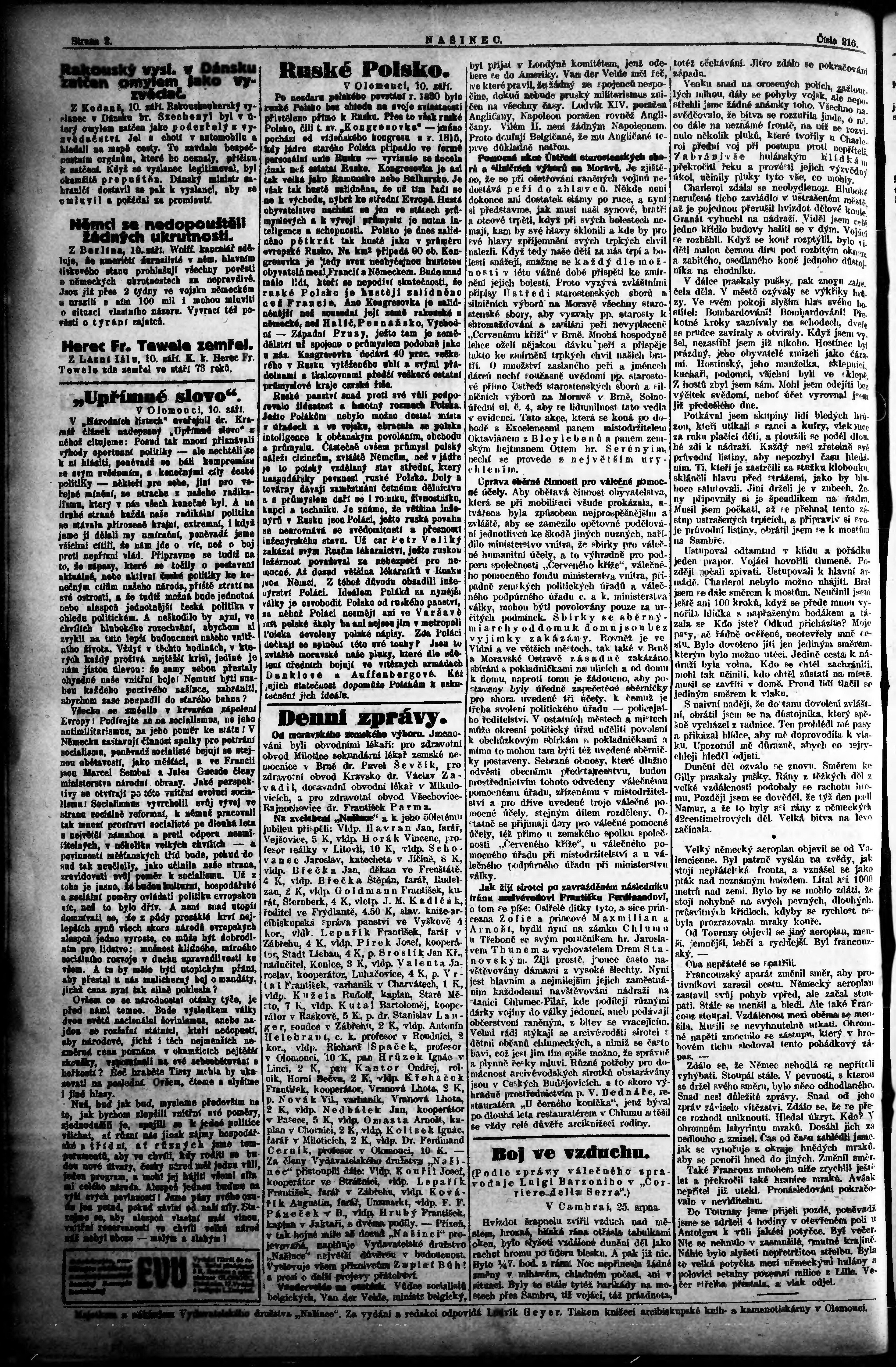 * Datum vydání výtisku: 11.9.1914 Číslo výtisku: 215 Typ výtisku: příloha