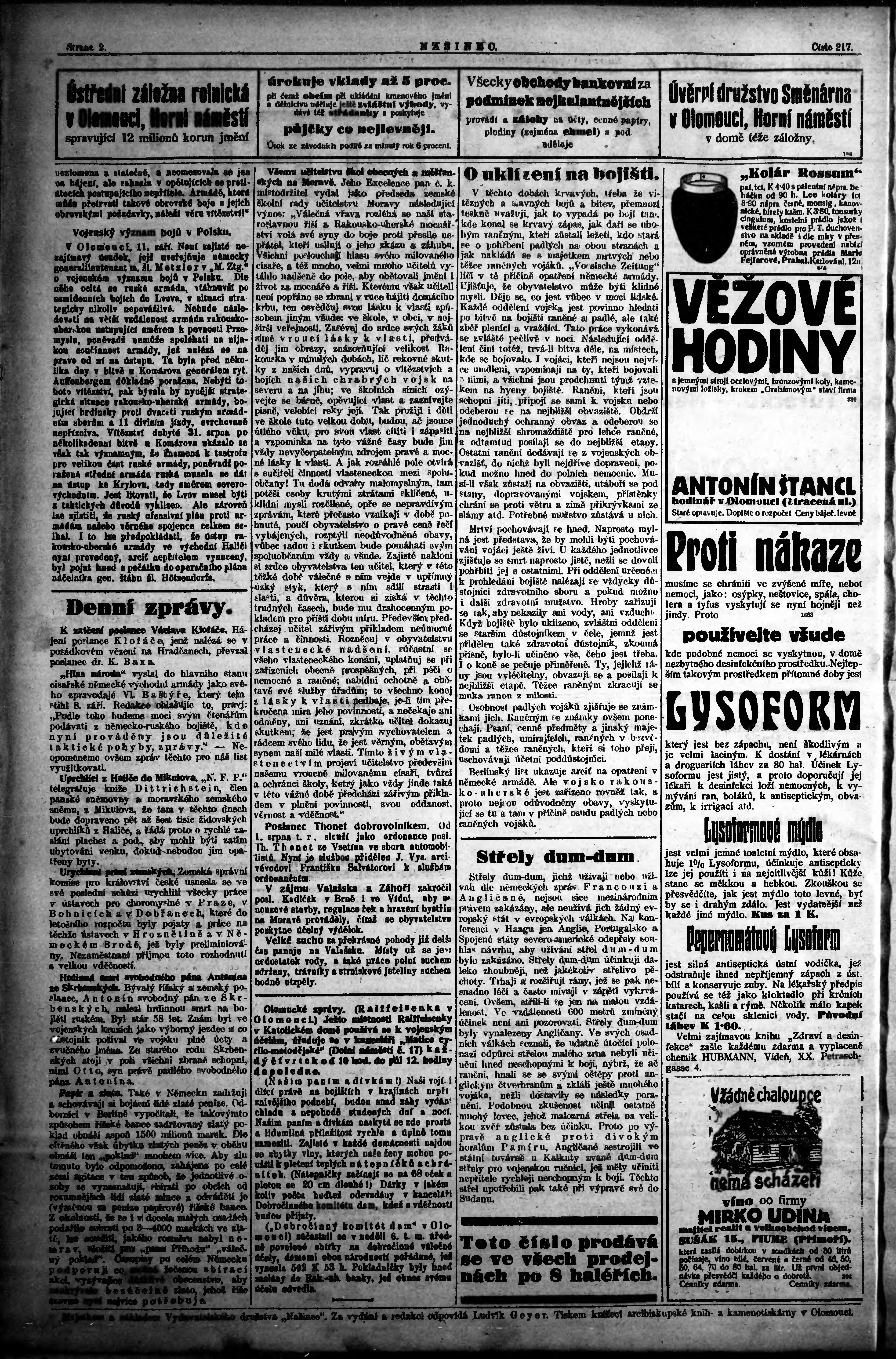 * Datum vydání výtisku: 12.9.1914 Číslo výtisku: 4 Poznámky k výtisku: ranní vydání;