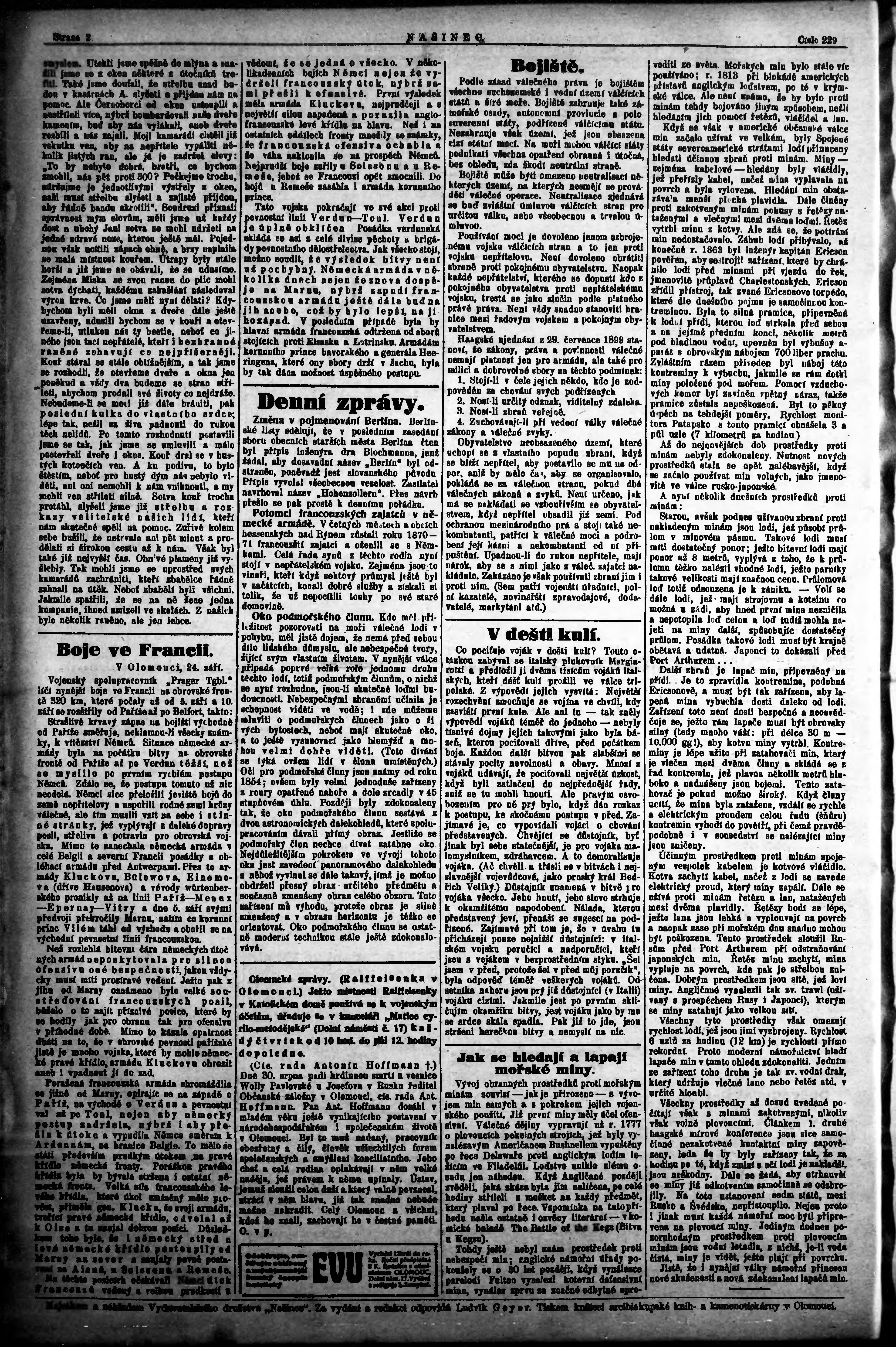 * Datum vydání výtisku: 25.9.1914 Číslo výtisku: 15 Poznámky k výtisku: ranní vydání;