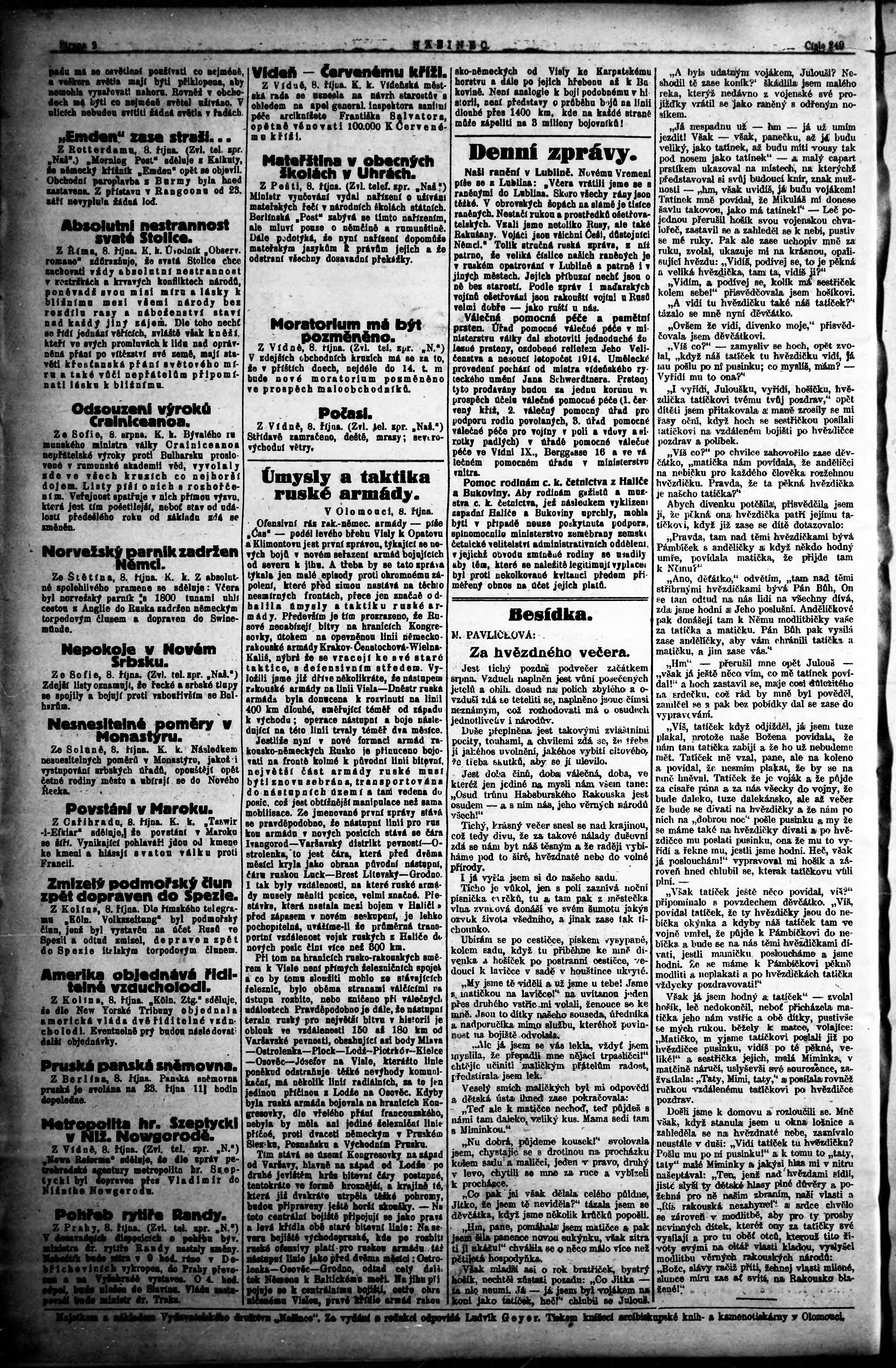* Datum vydání výtisku: 9.10.1914 Číslo výtisku: 27 Poznámky k výtisku: ranní vydání;
