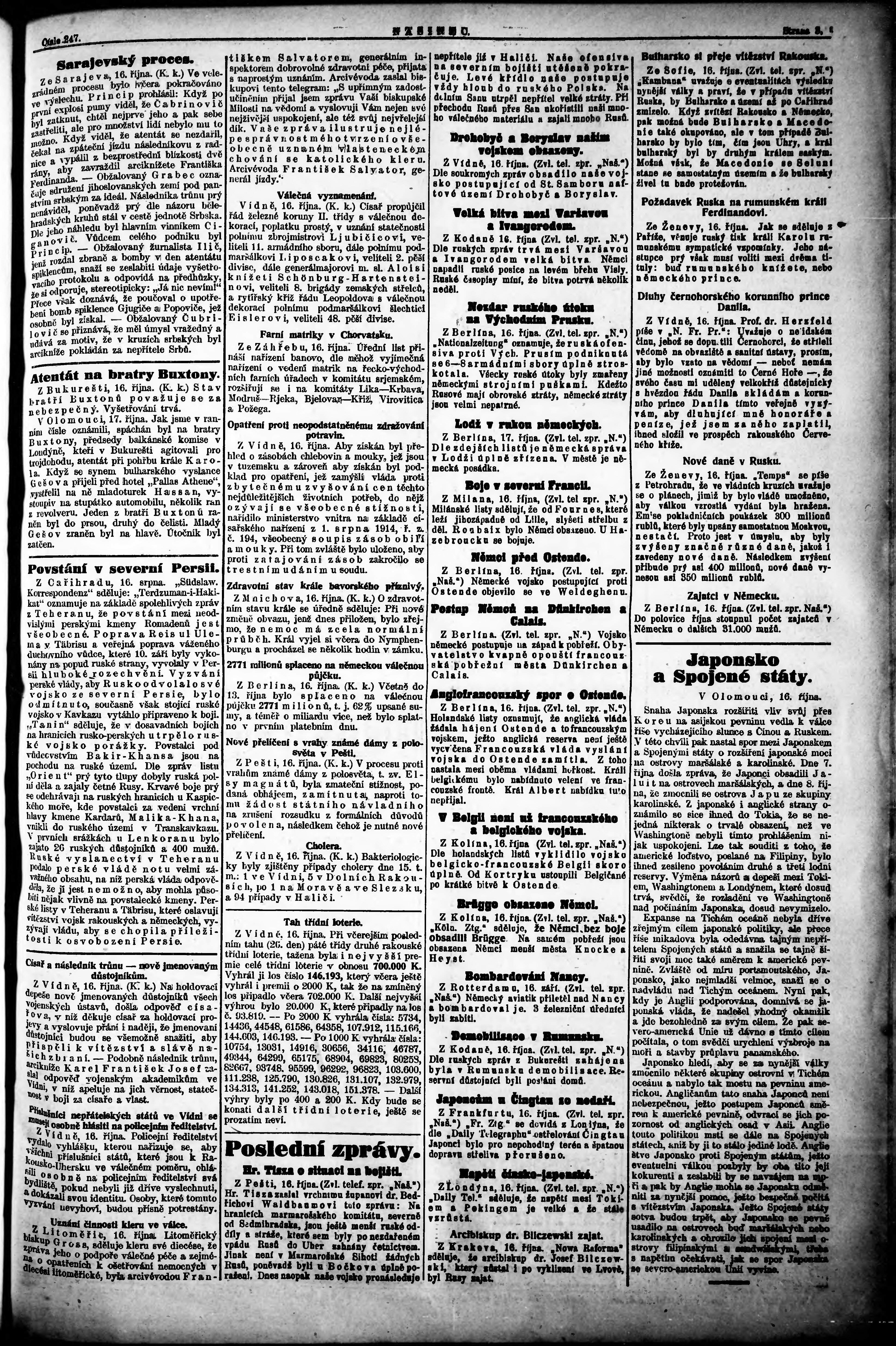 * Datum vydání výtisku: 17.10.1914 Číslo výtisku: 247