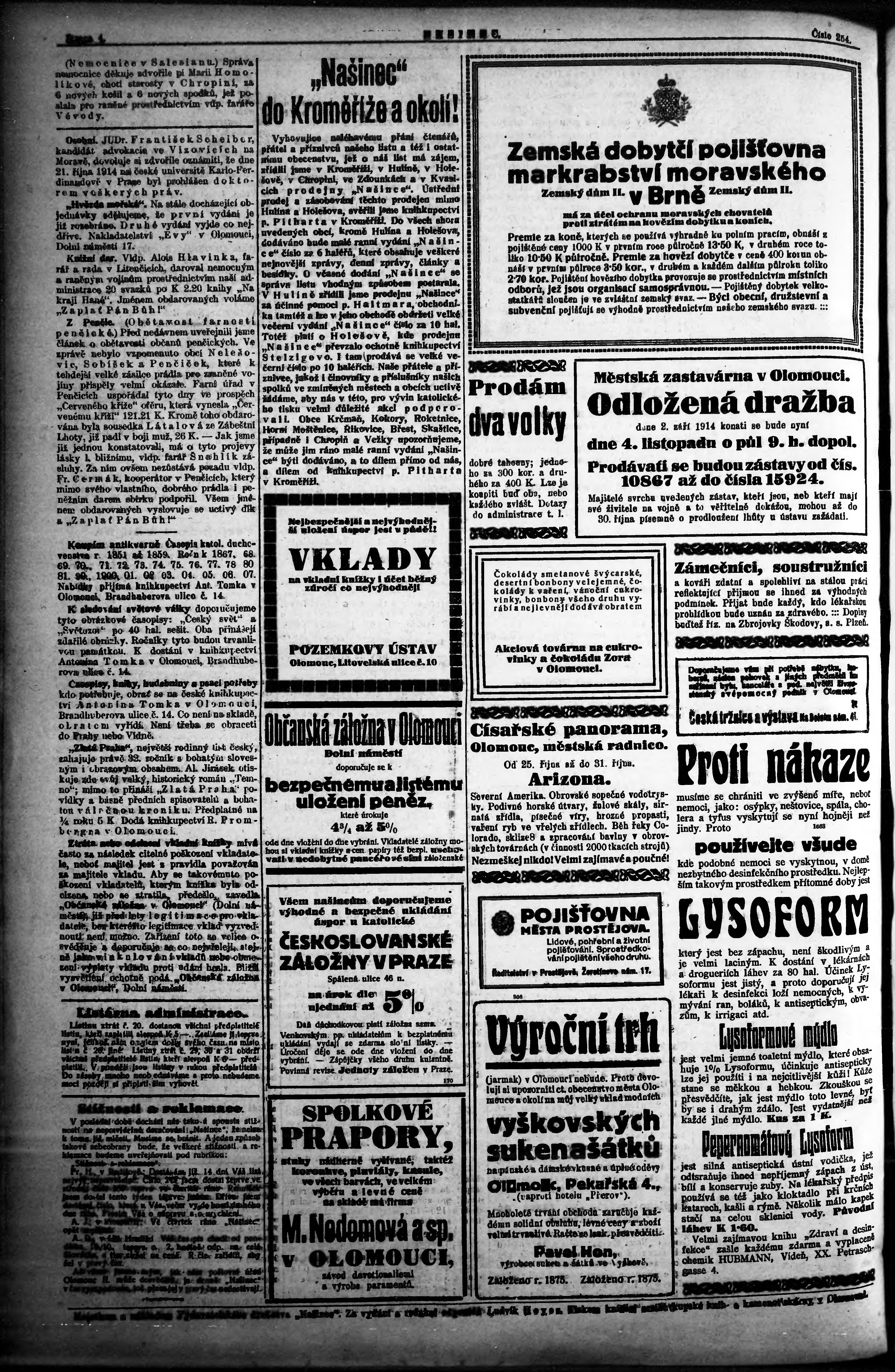 * Datum vydání výtisku: 25.10.1914 Číslo výtisku: 254