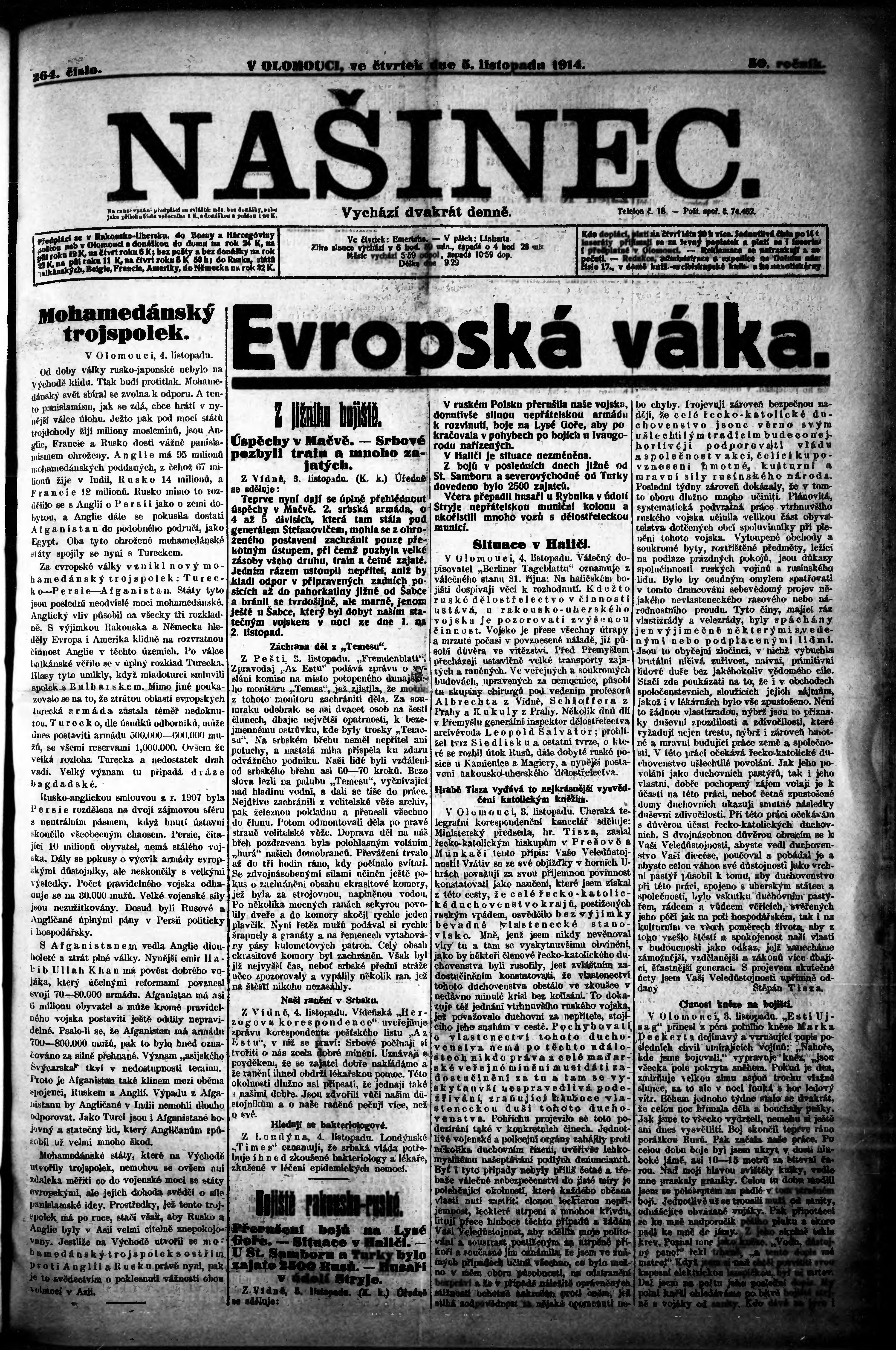 * Datum vydání výtisku: 5.11.1914 Číslo výtisku: 264