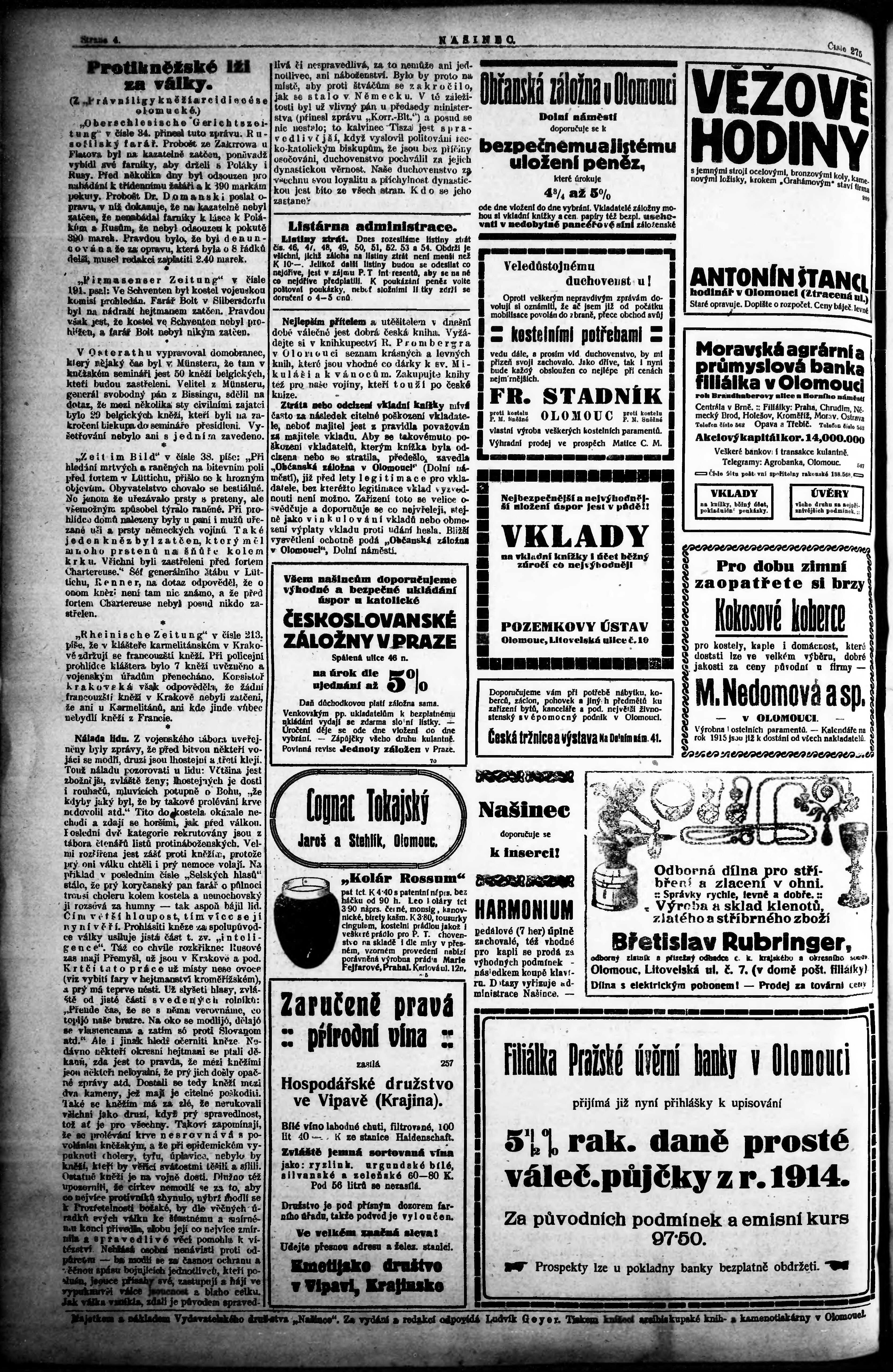 * Datum vydání výtisku: 18.11.1914 Číslo výtisku: 275