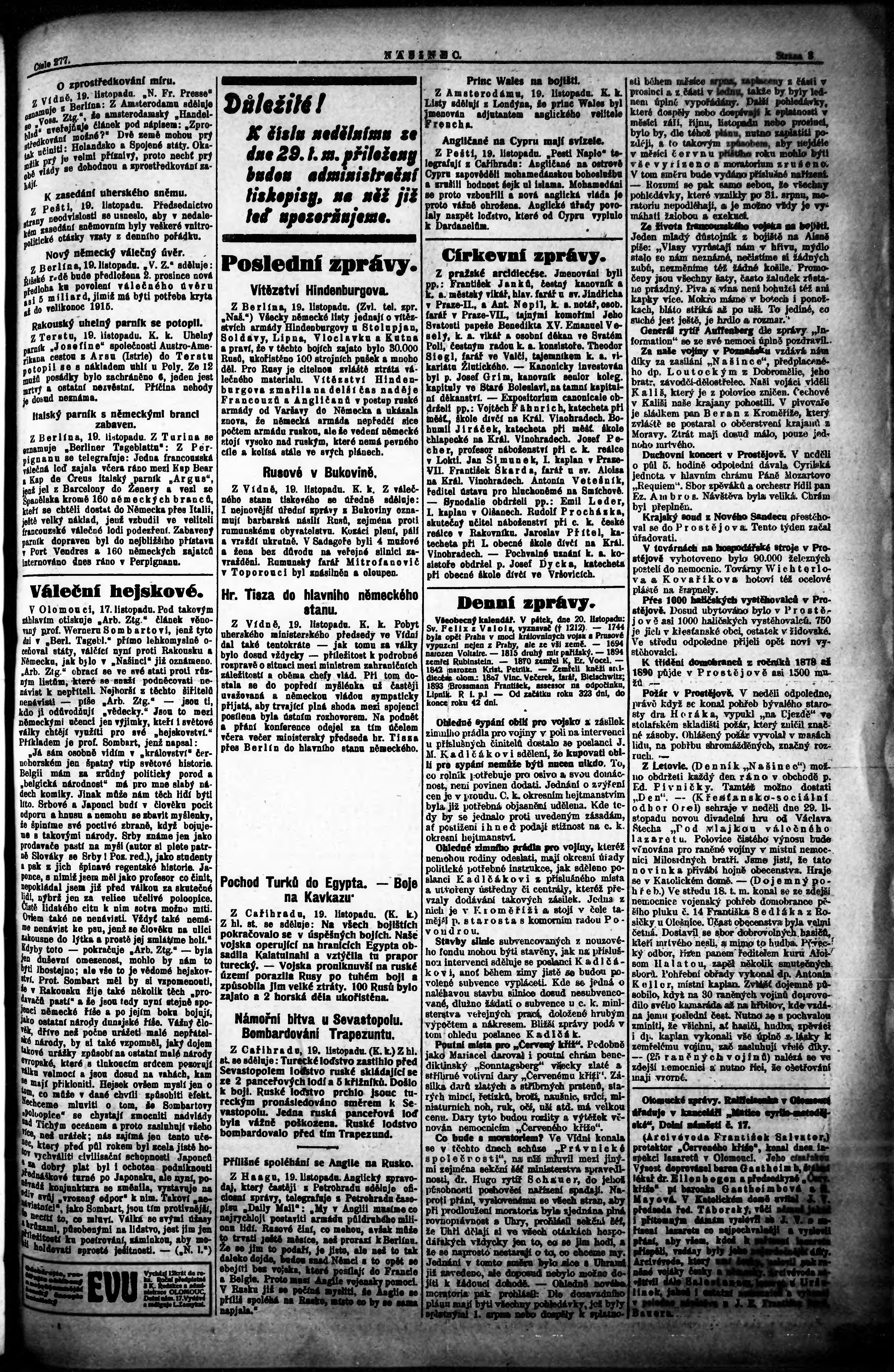 * Datum vydání výtisku: 20.11.1914 Číslo výtisku: 277
