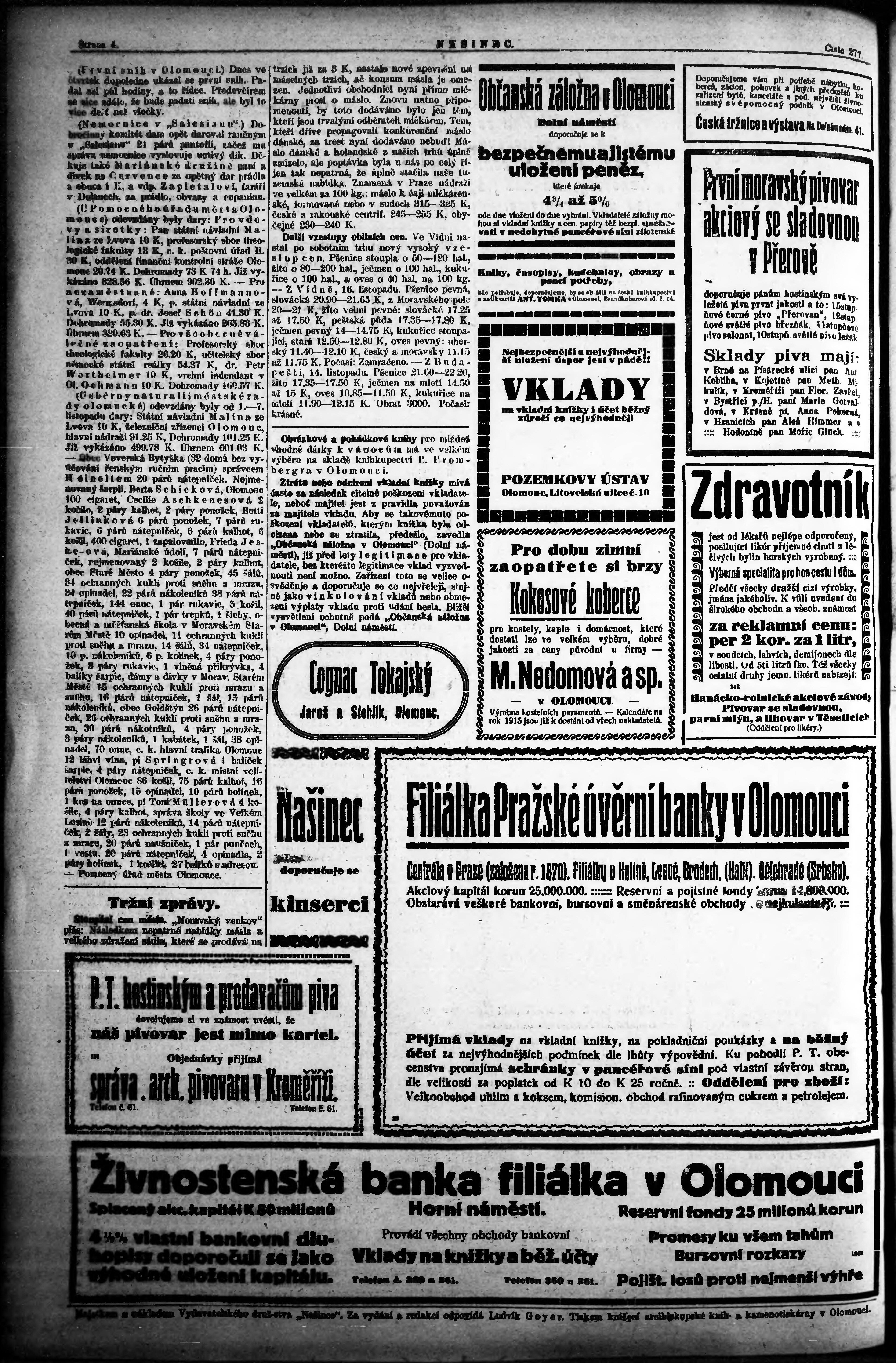 * Datum vydání výtisku: 20.11.1914 Číslo výtisku: 277