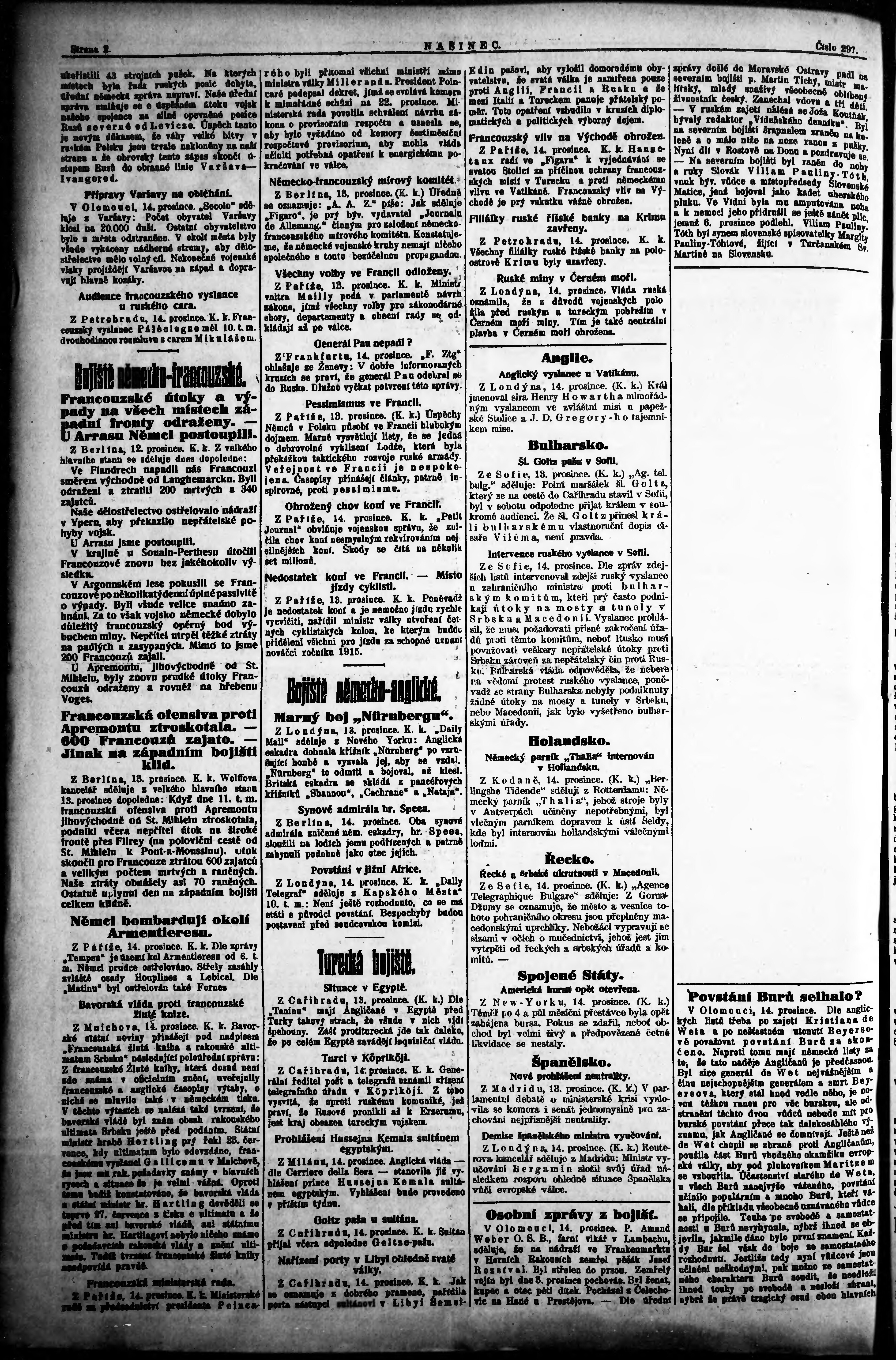 * Datum vydání výtisku: 15.12.1914 Číslo výtisku: 297