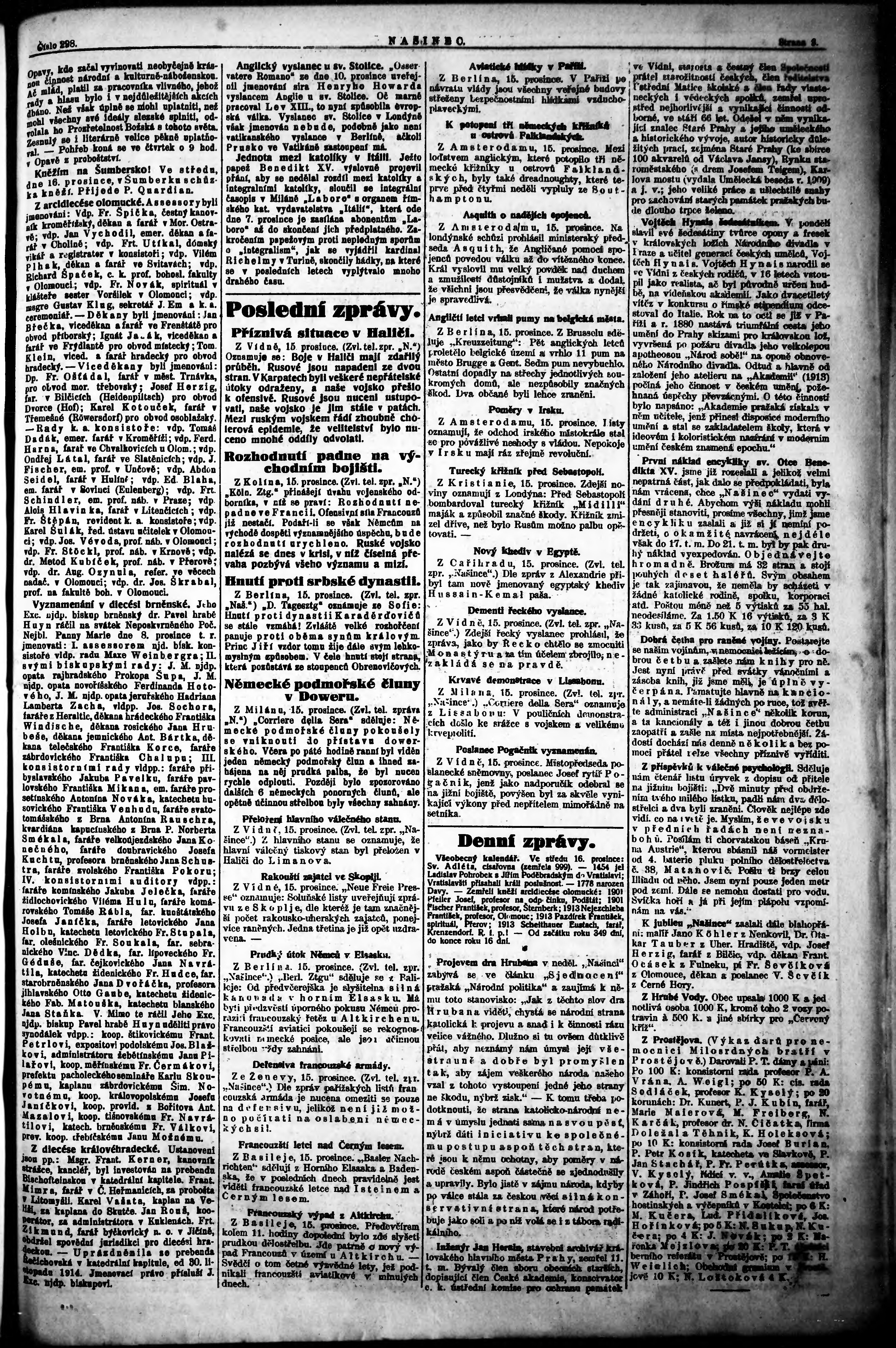 * Datum vydání výtisku: 16.12.1914 Číslo výtisku: 298