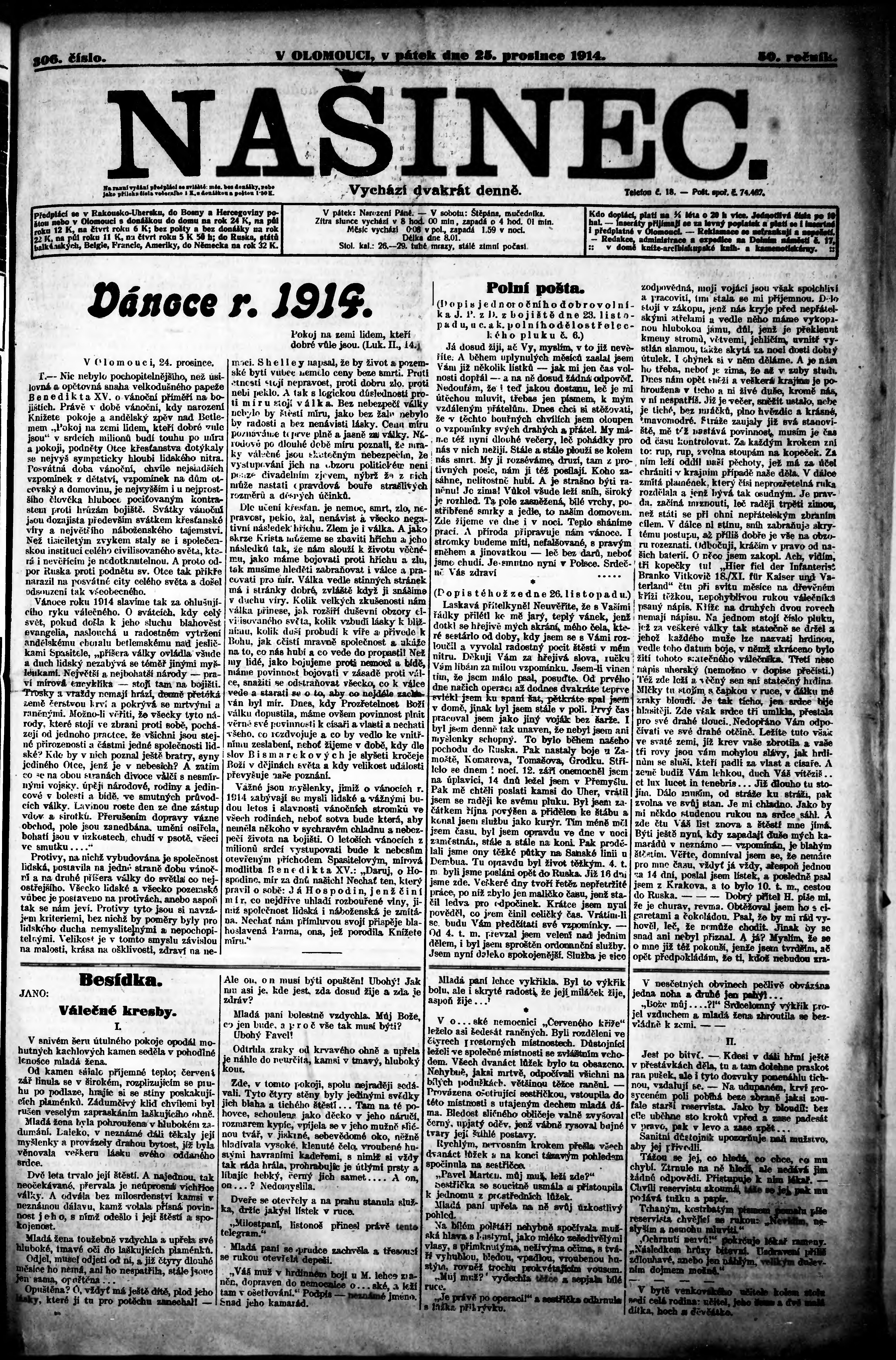* Datum vydání výtisku: 25.12.1914 Číslo výtisku: 306