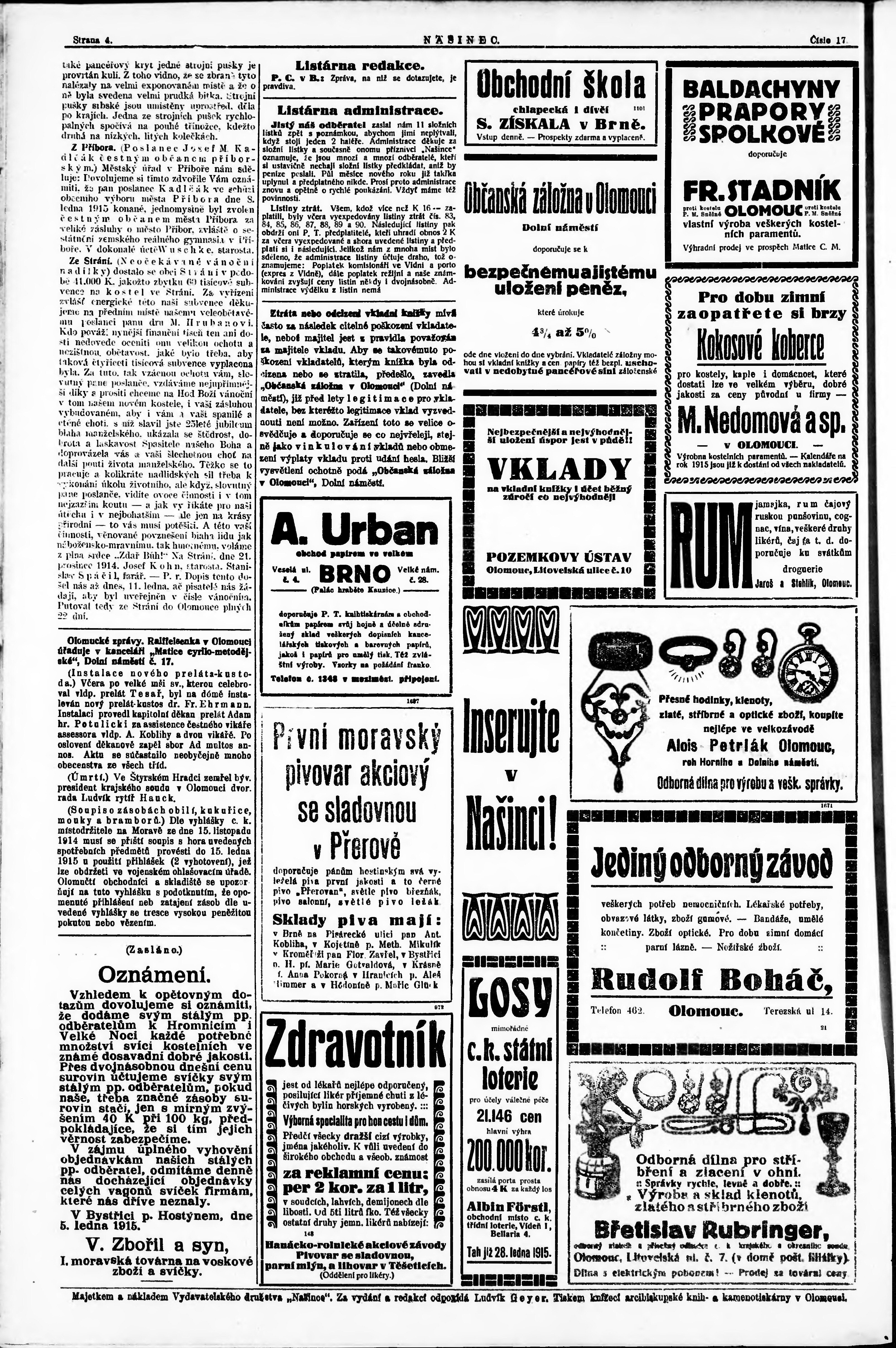 * Datum vydání výtisku: 12.1.1915 Číslo výtisku: 17 Poznámky k výtisku: večerní vydání;