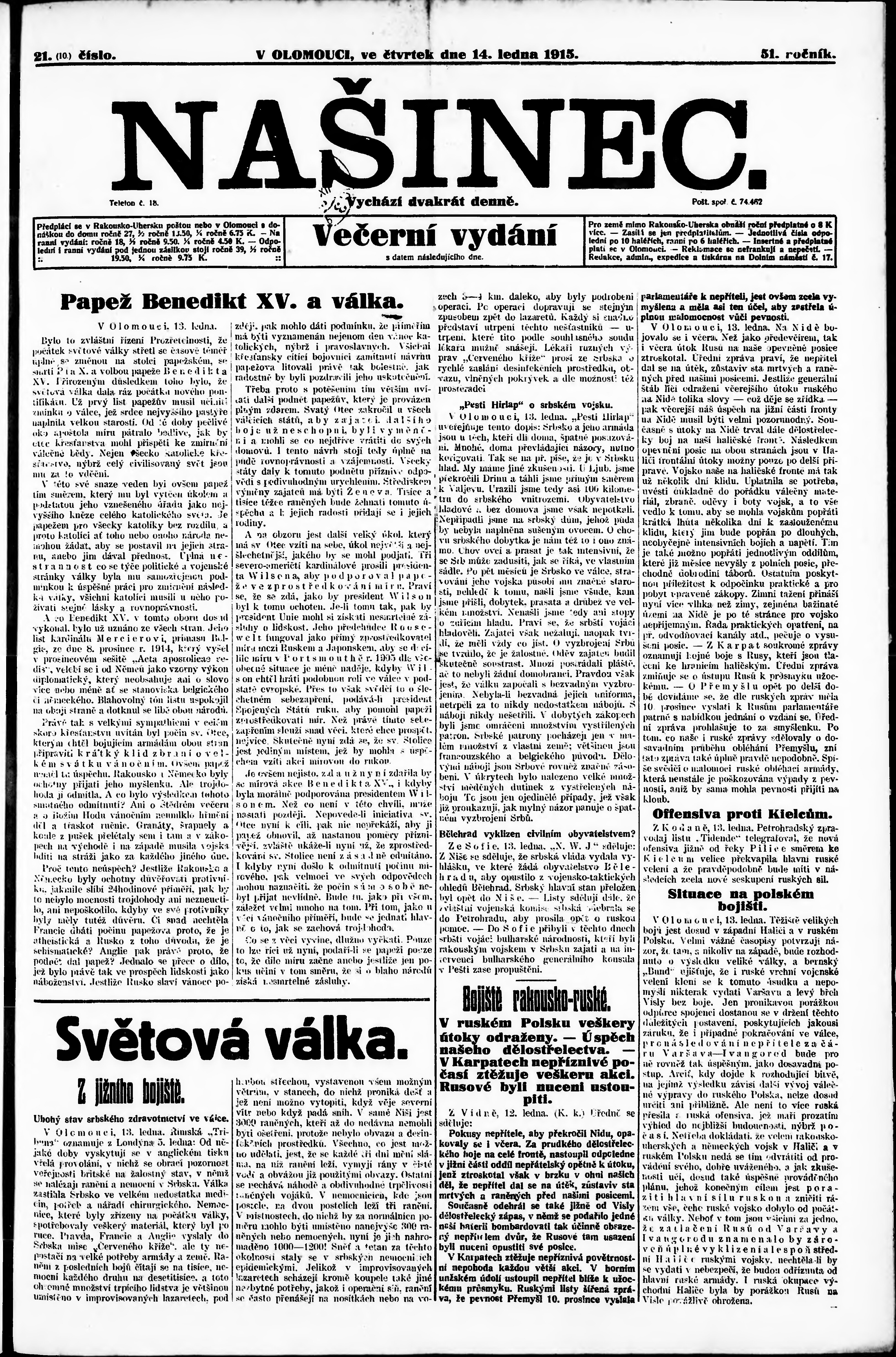 večerní vydání;
