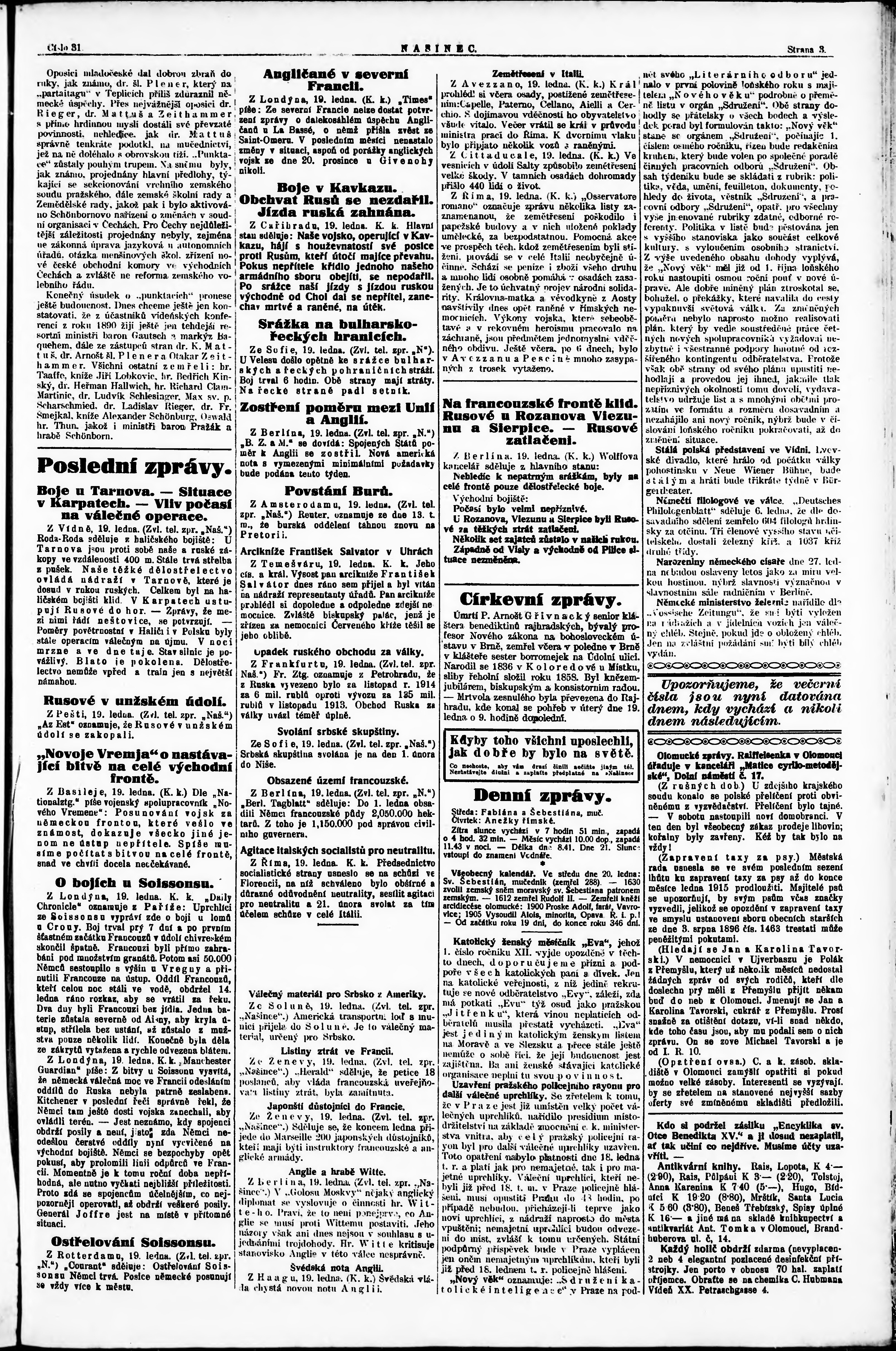 večerní vydání; s. 1 - 2 není k dispozici;