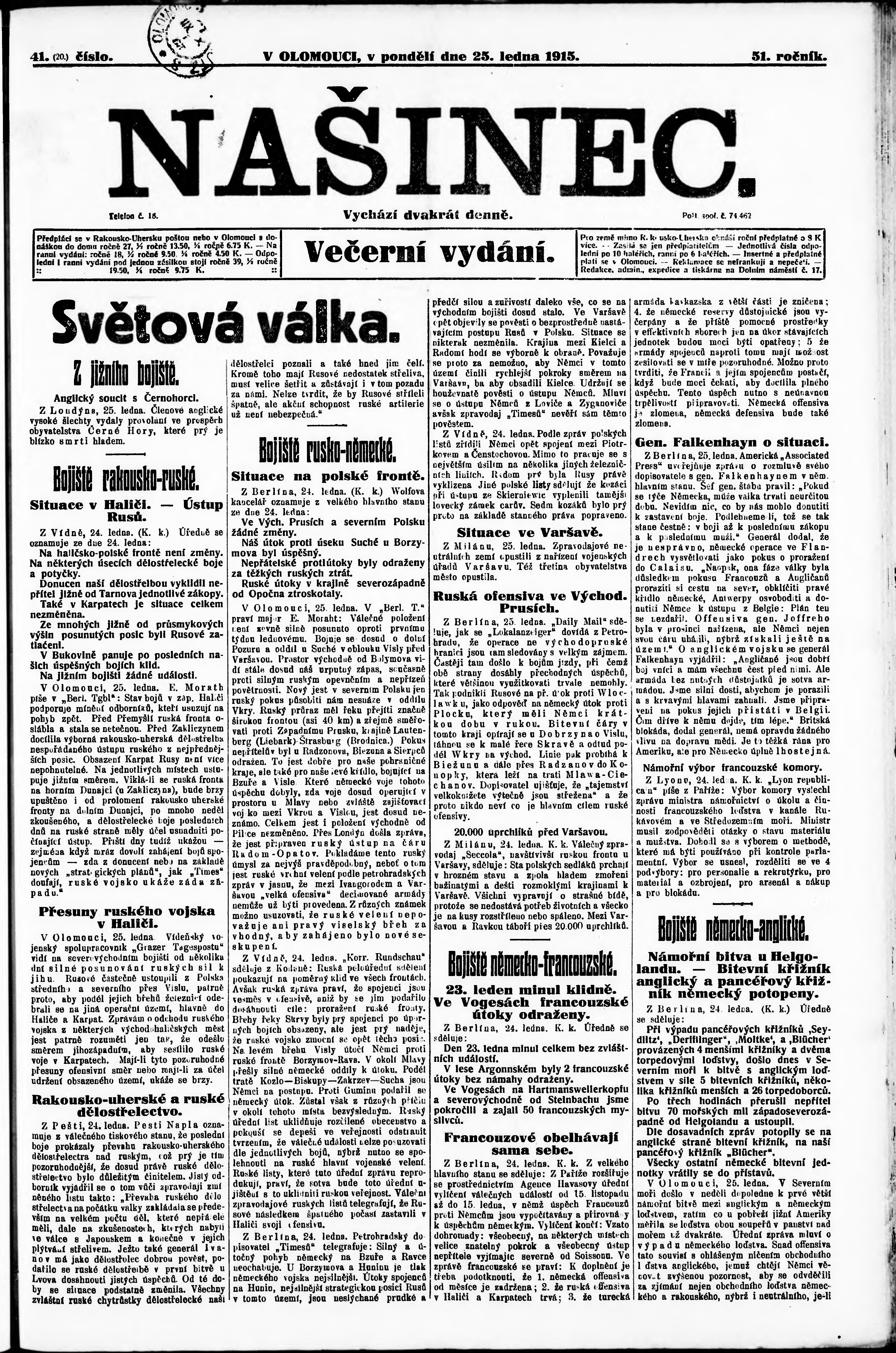večerní vydání;