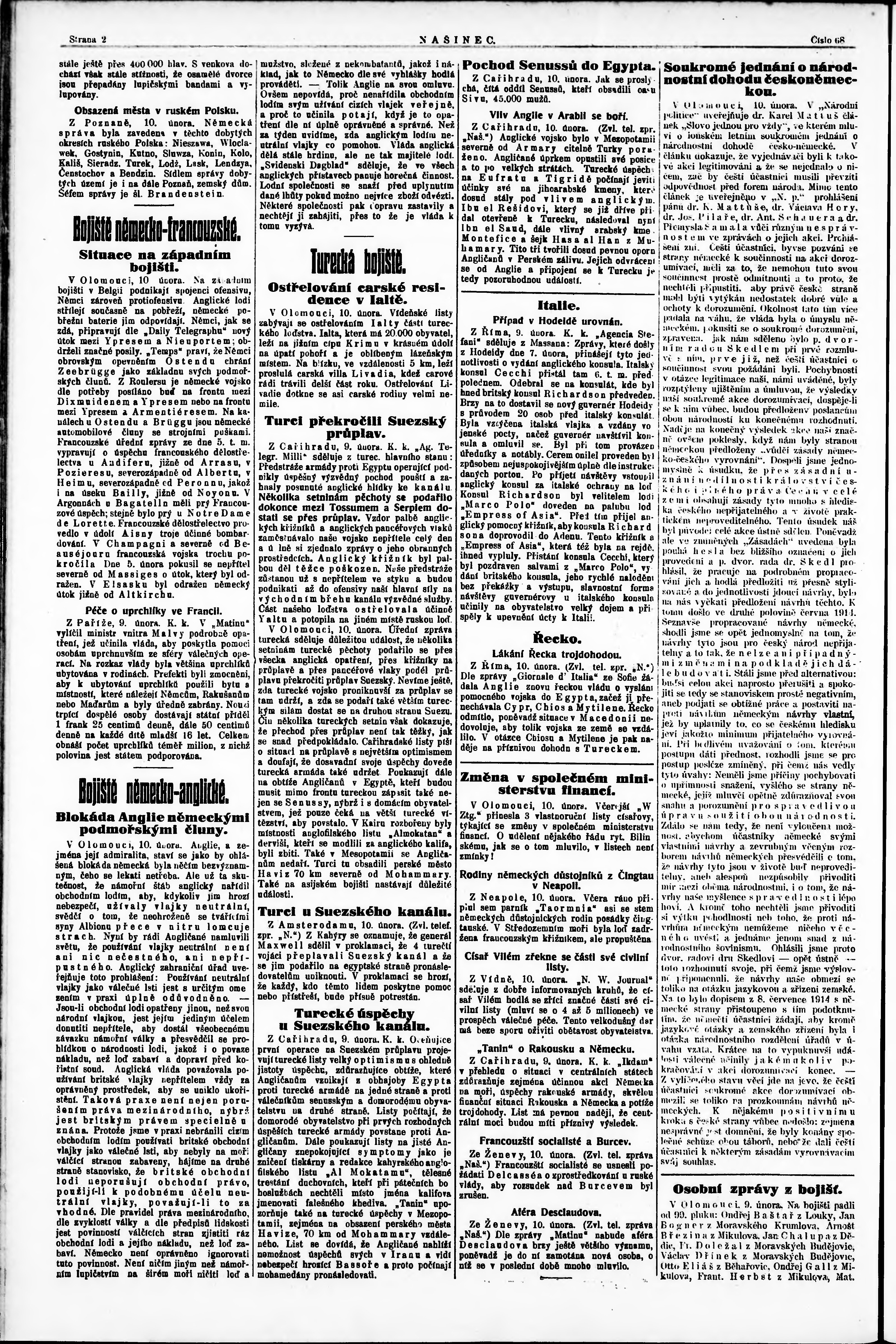 * Datum vydání výtisku: 10.2.1915 Číslo výtisku: 68 Poznámky k výtisku: večerní vydání;