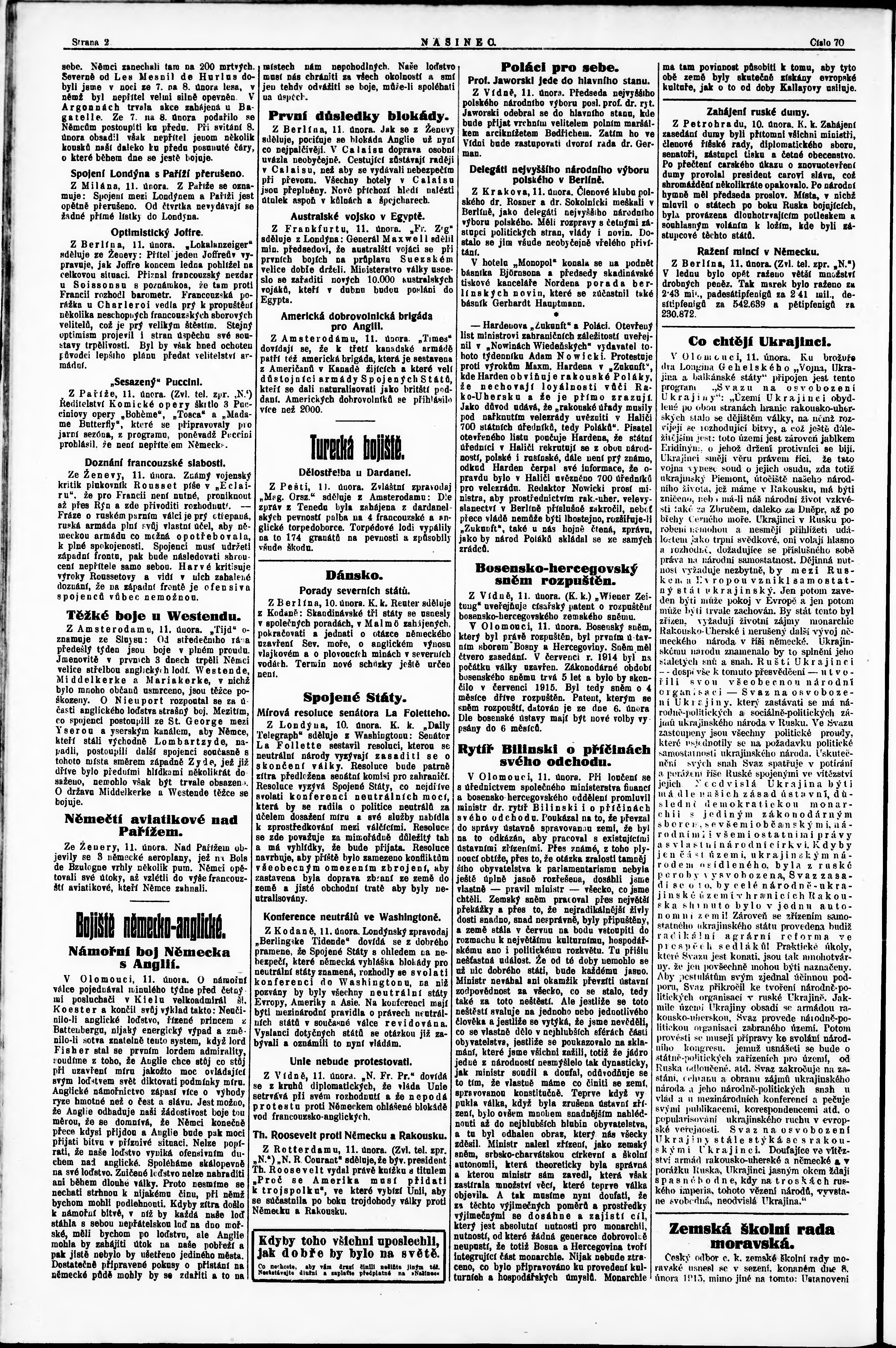 * Datum vydání výtisku: 11.2.1915 Číslo výtisku: 70 Poznámky k výtisku: večerní vydání;