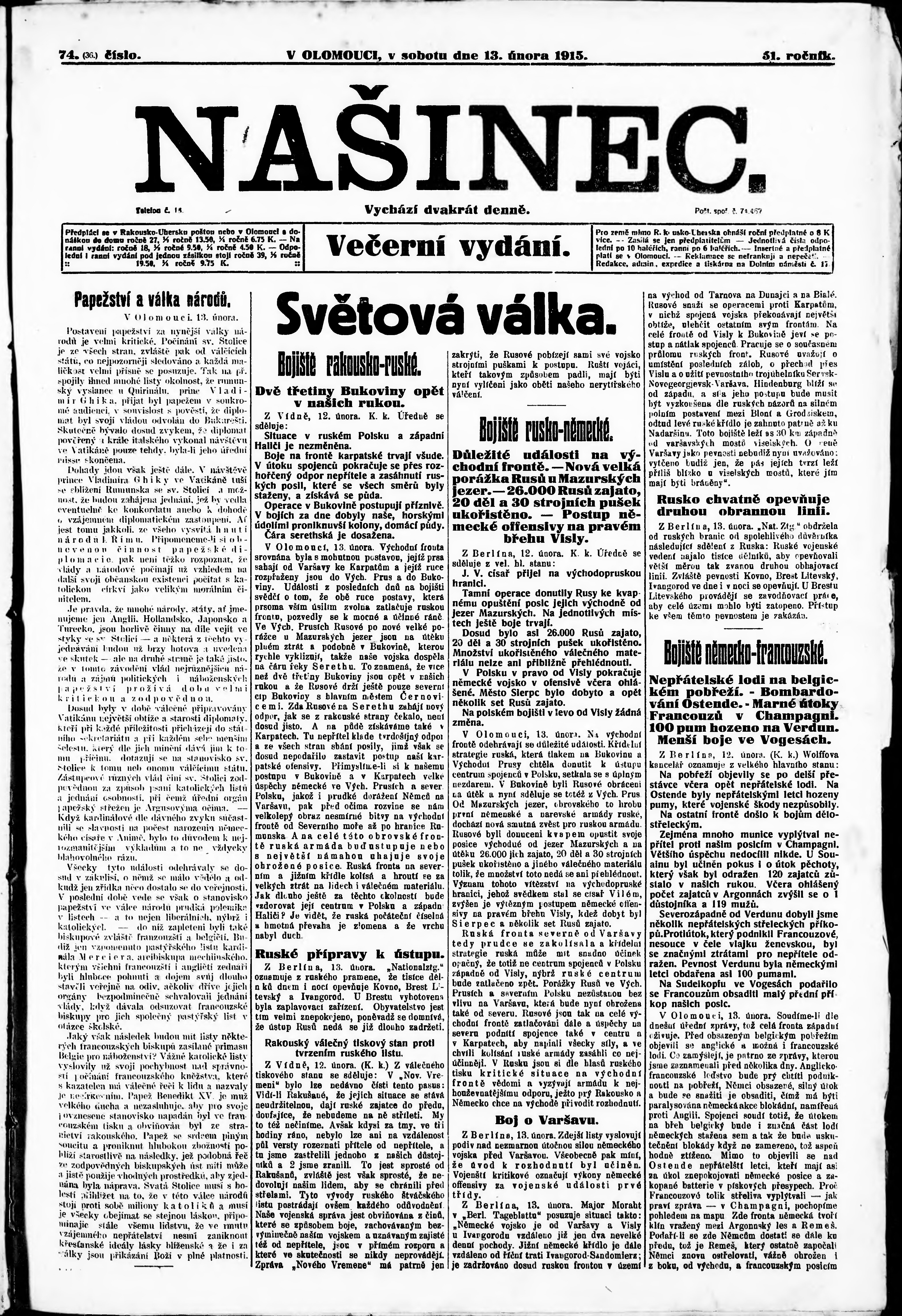 večerní vydání;