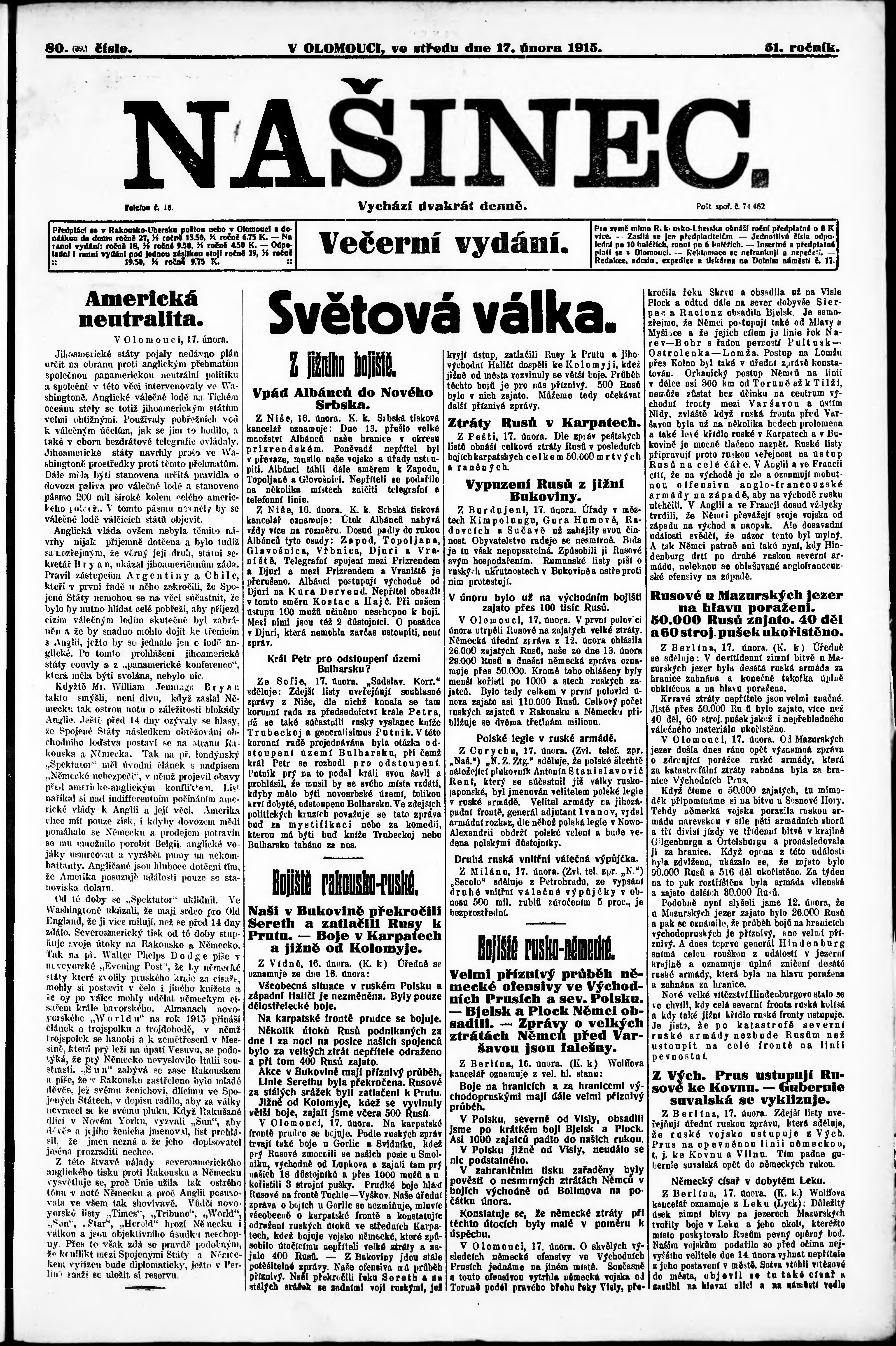 večerní vydání;