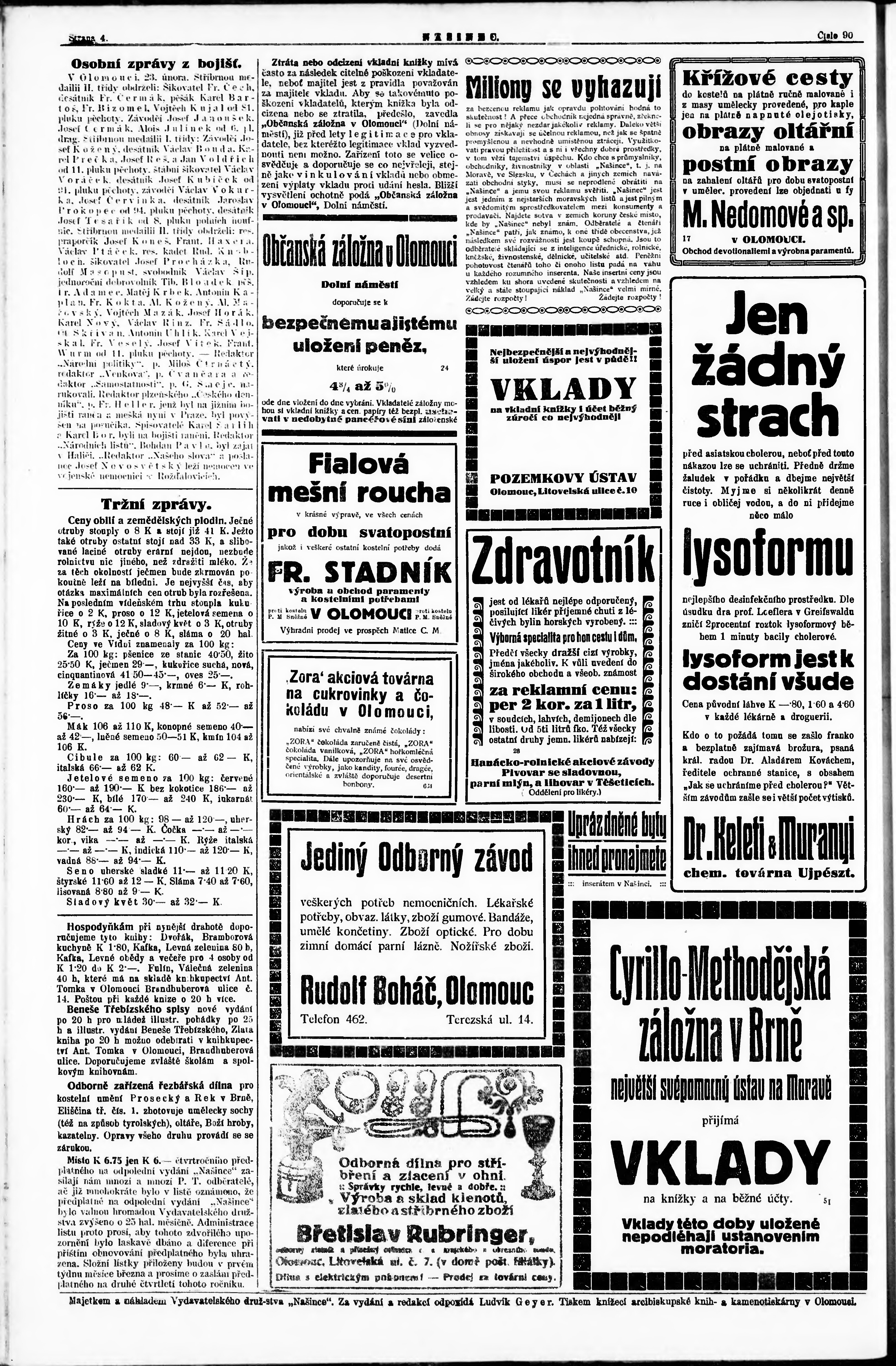 * Datum vydání výtisku: 23.2.1915 Číslo výtisku: 90 Poznámky k výtisku: večerní vydání;