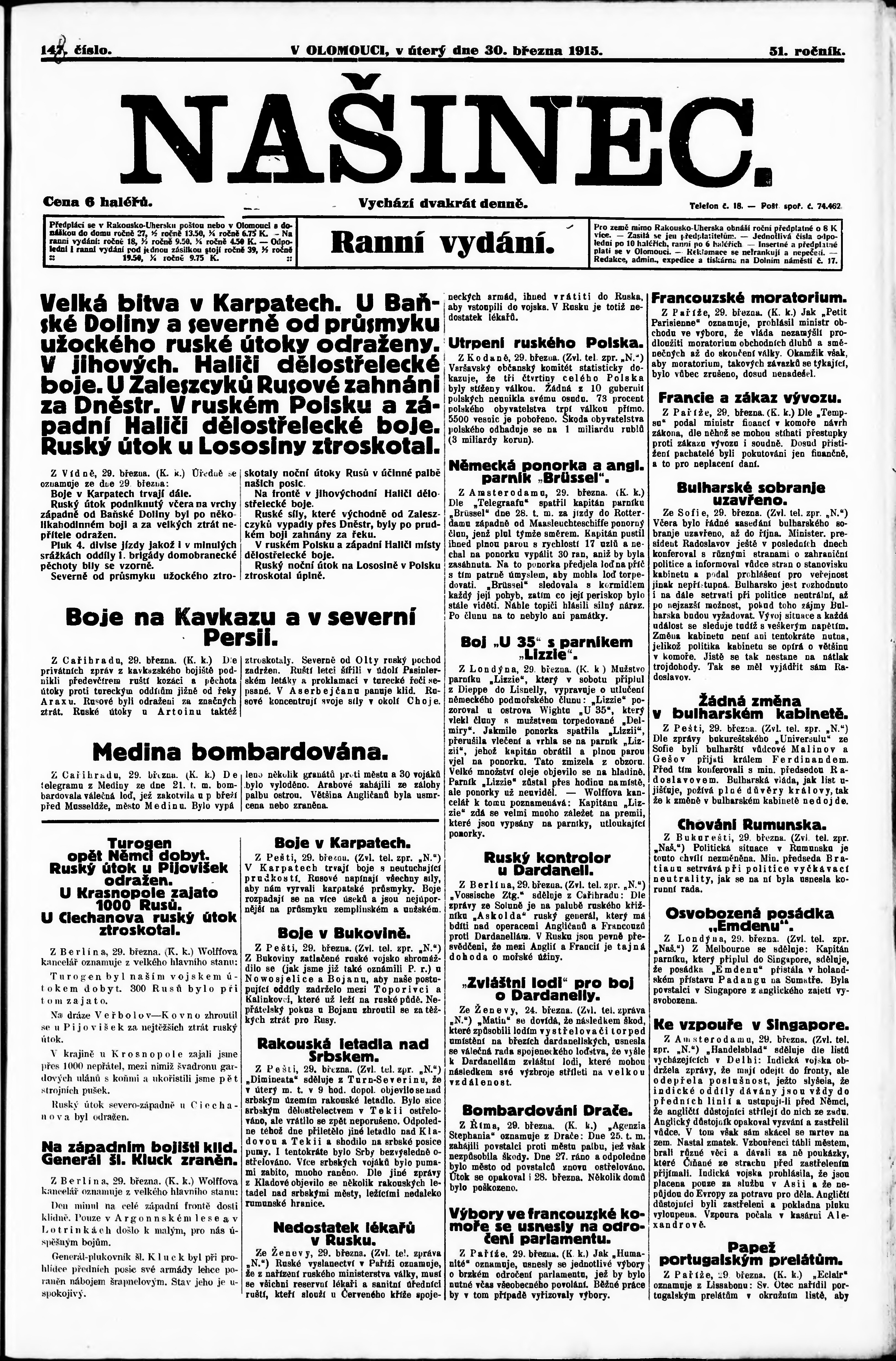 Datum vydání výtisku: 30.3.1915