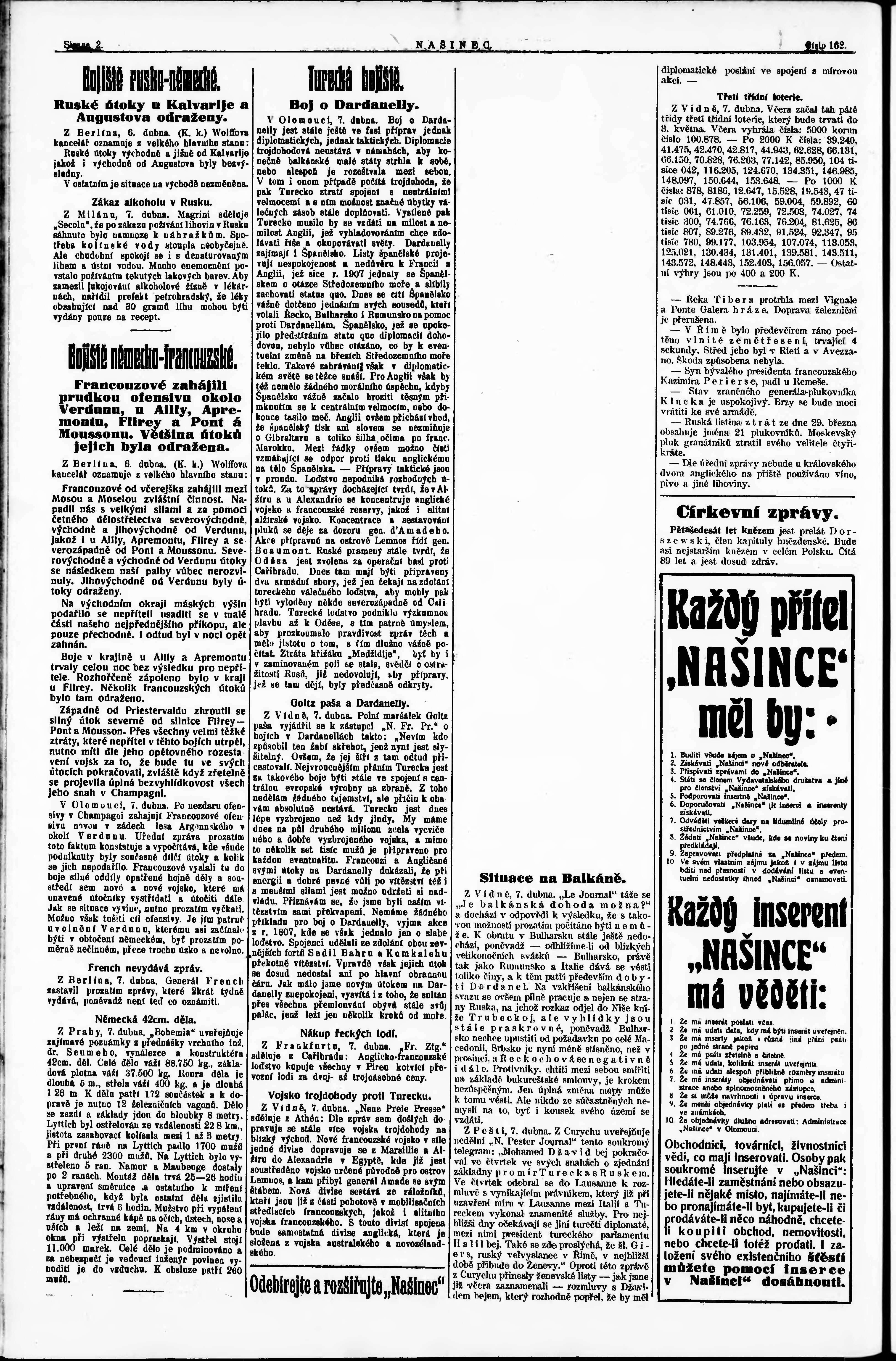 * Datum vydání výtisku: 7.4.1915 Číslo výtisku: 162 Poznámky k výtisku: večerní vydání;