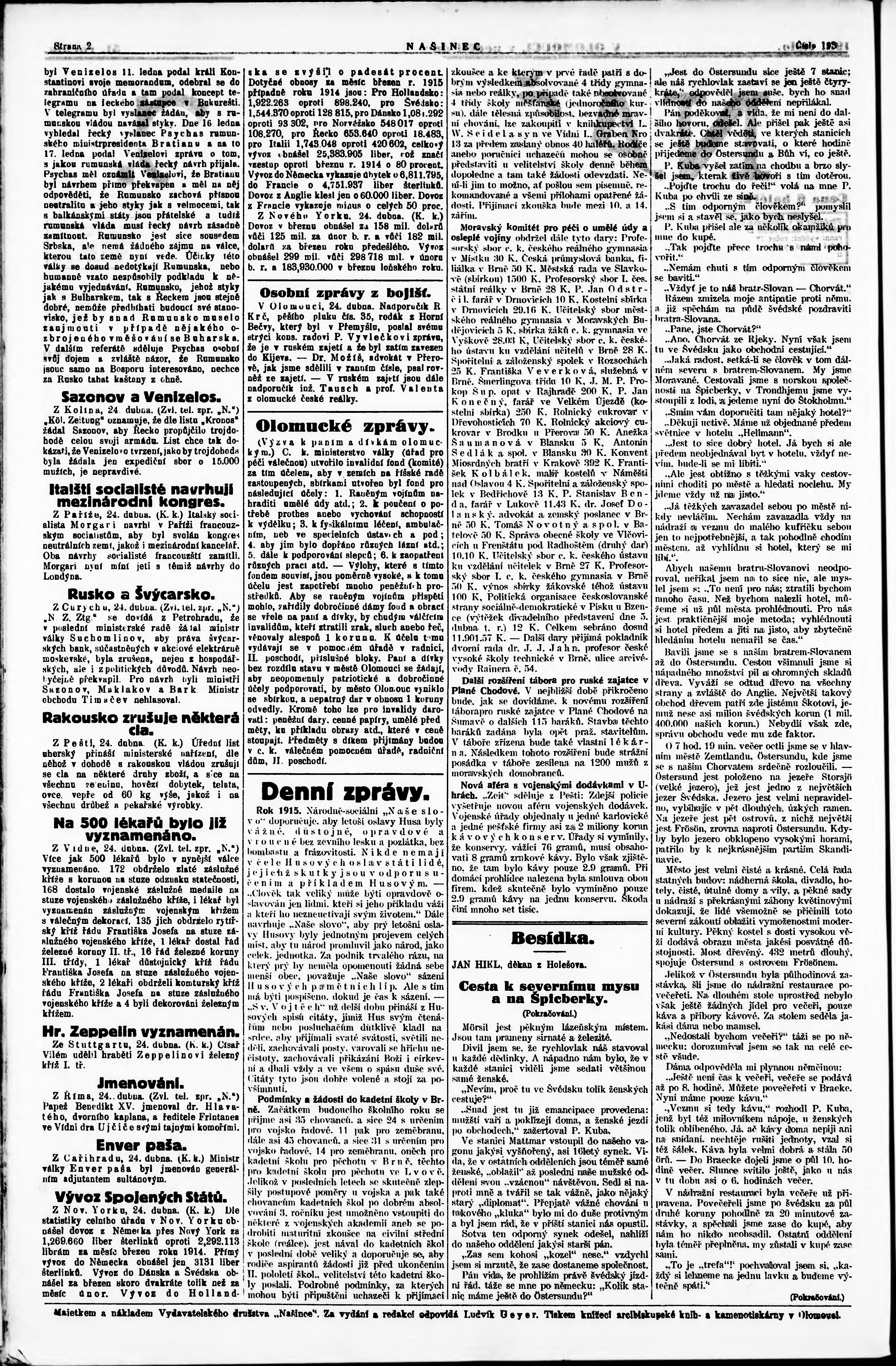 * Datum vydání výtisku: 25.4.1915 Číslo výtisku: 193 Poznámky k výtisku: ranní vydání;