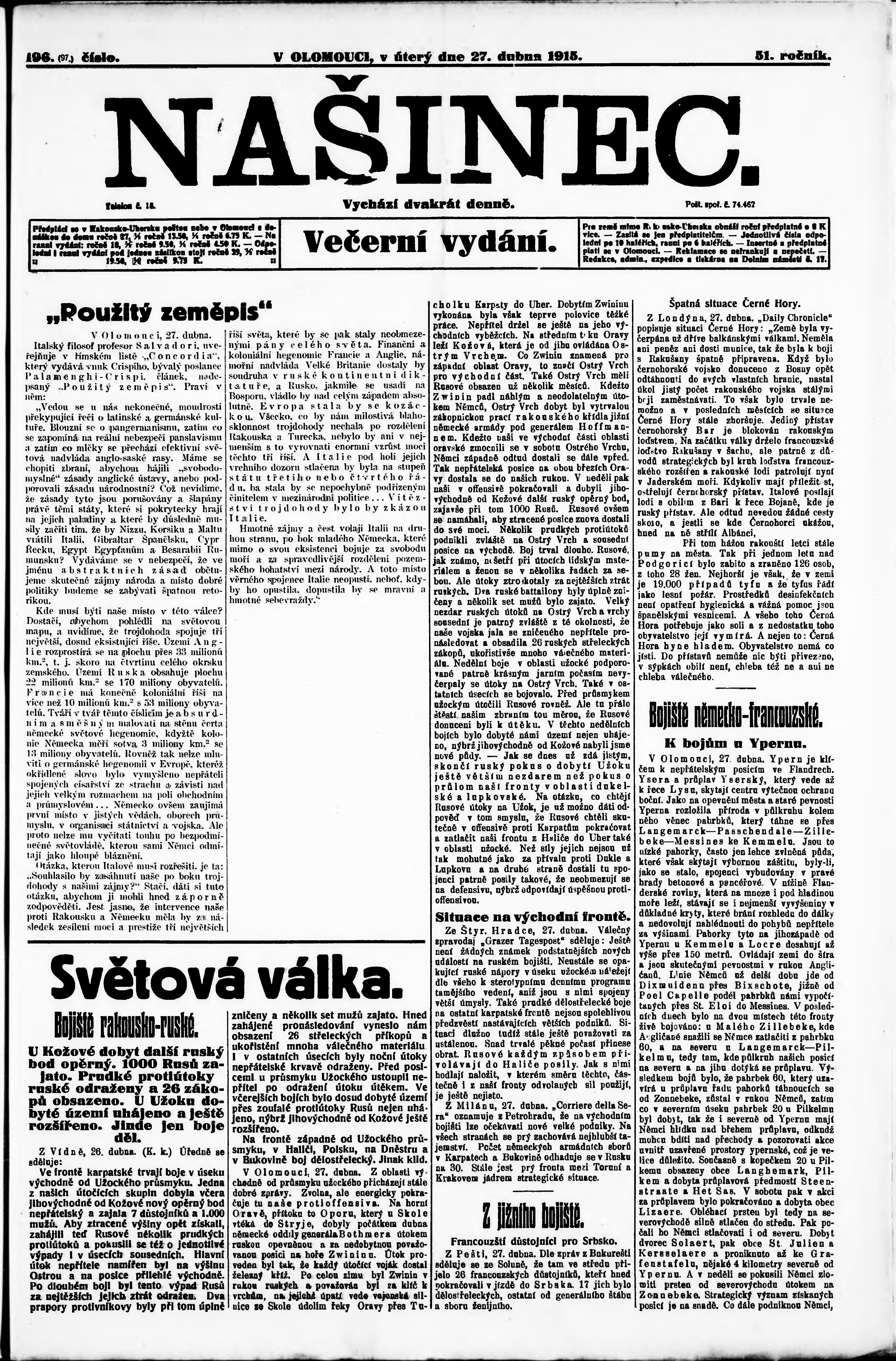 večerní vydání;