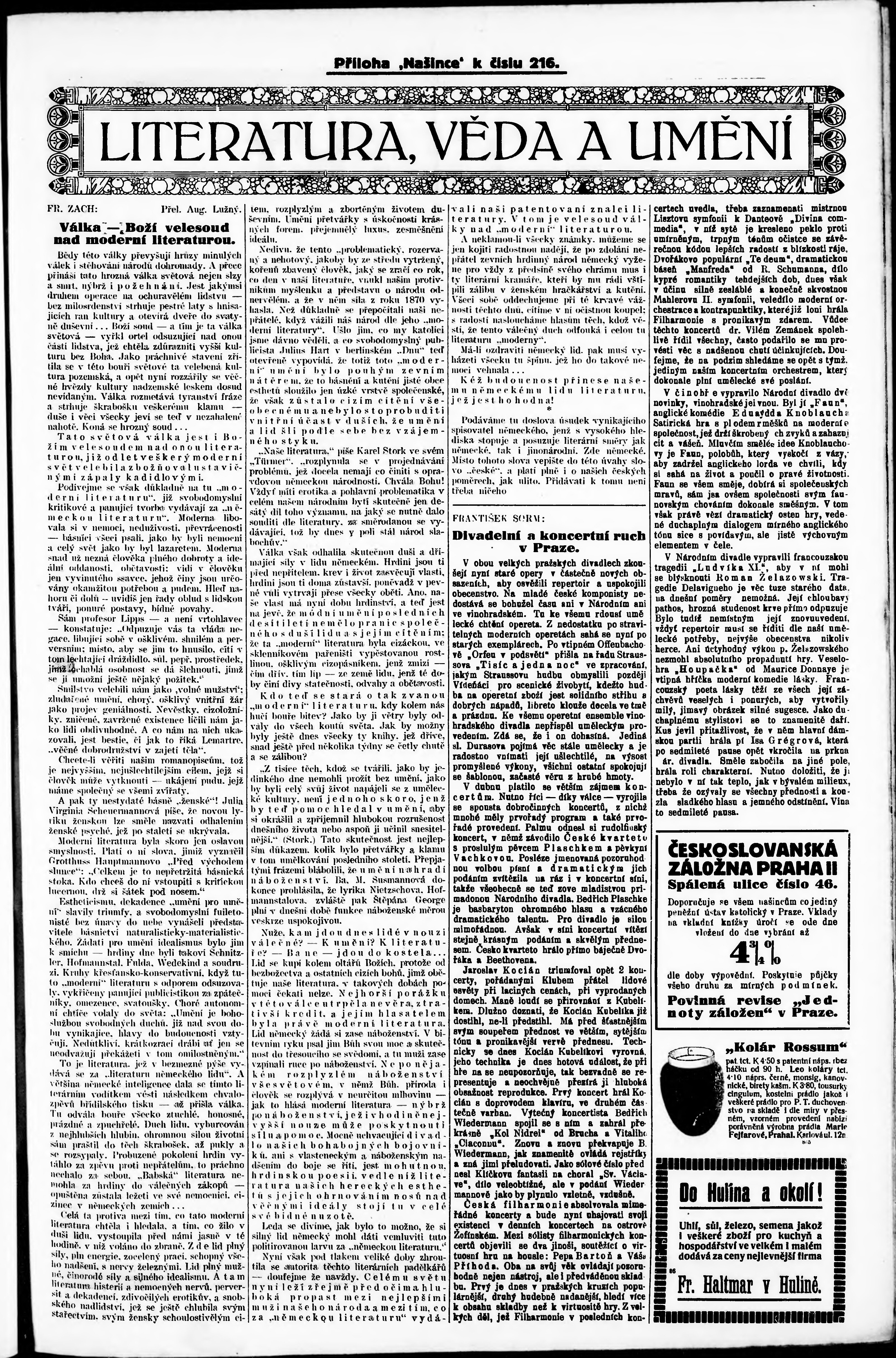 * Datum vydání výtisku: 8.5.1915 Číslo výtisku: 216 Poznámky k výtisku: večerní vydání;