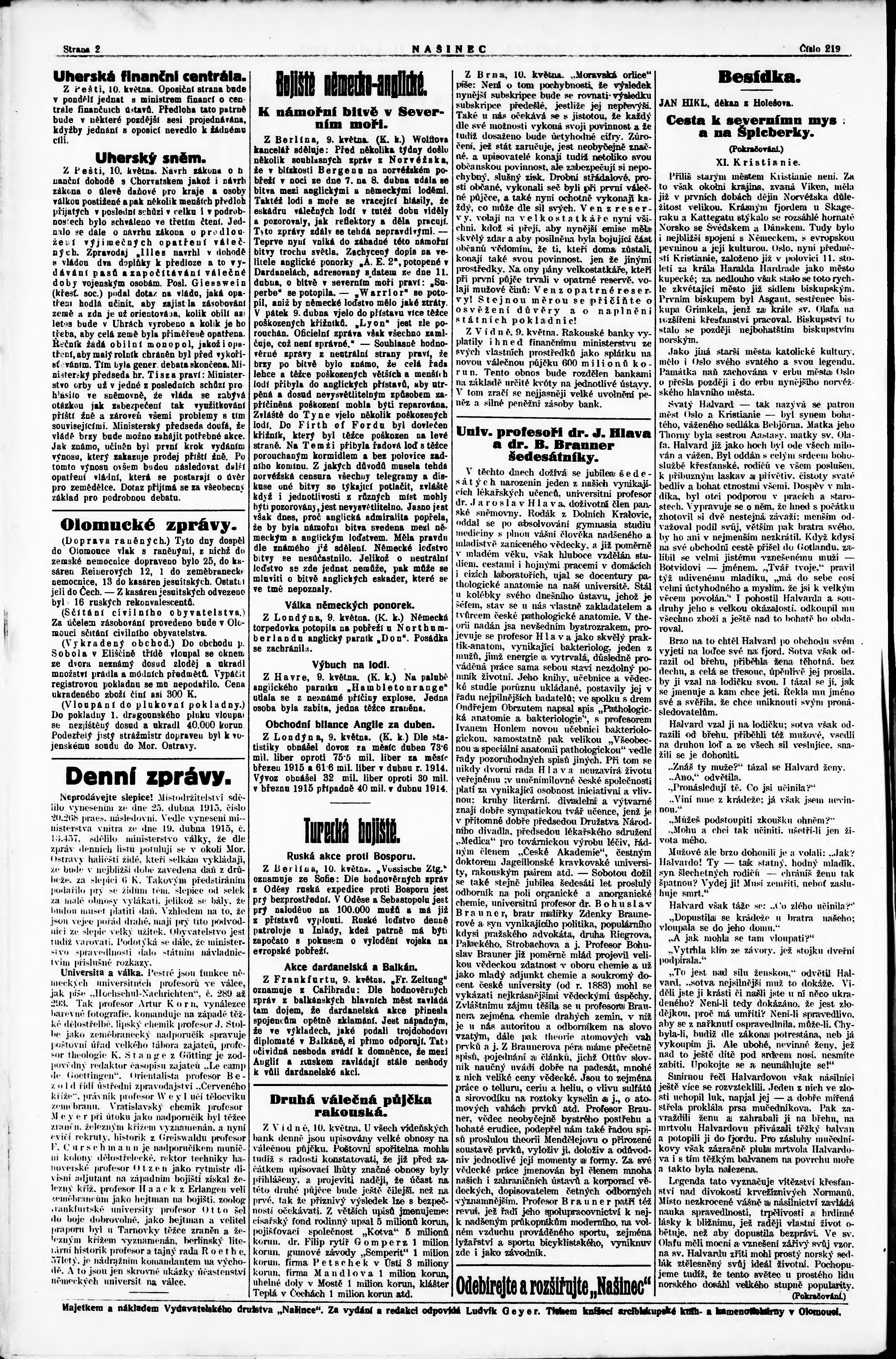 * Datum vydání výtisku: 11.5.1915 Číslo výtisku: 219 Poznámky k výtisku: ranní vydání;