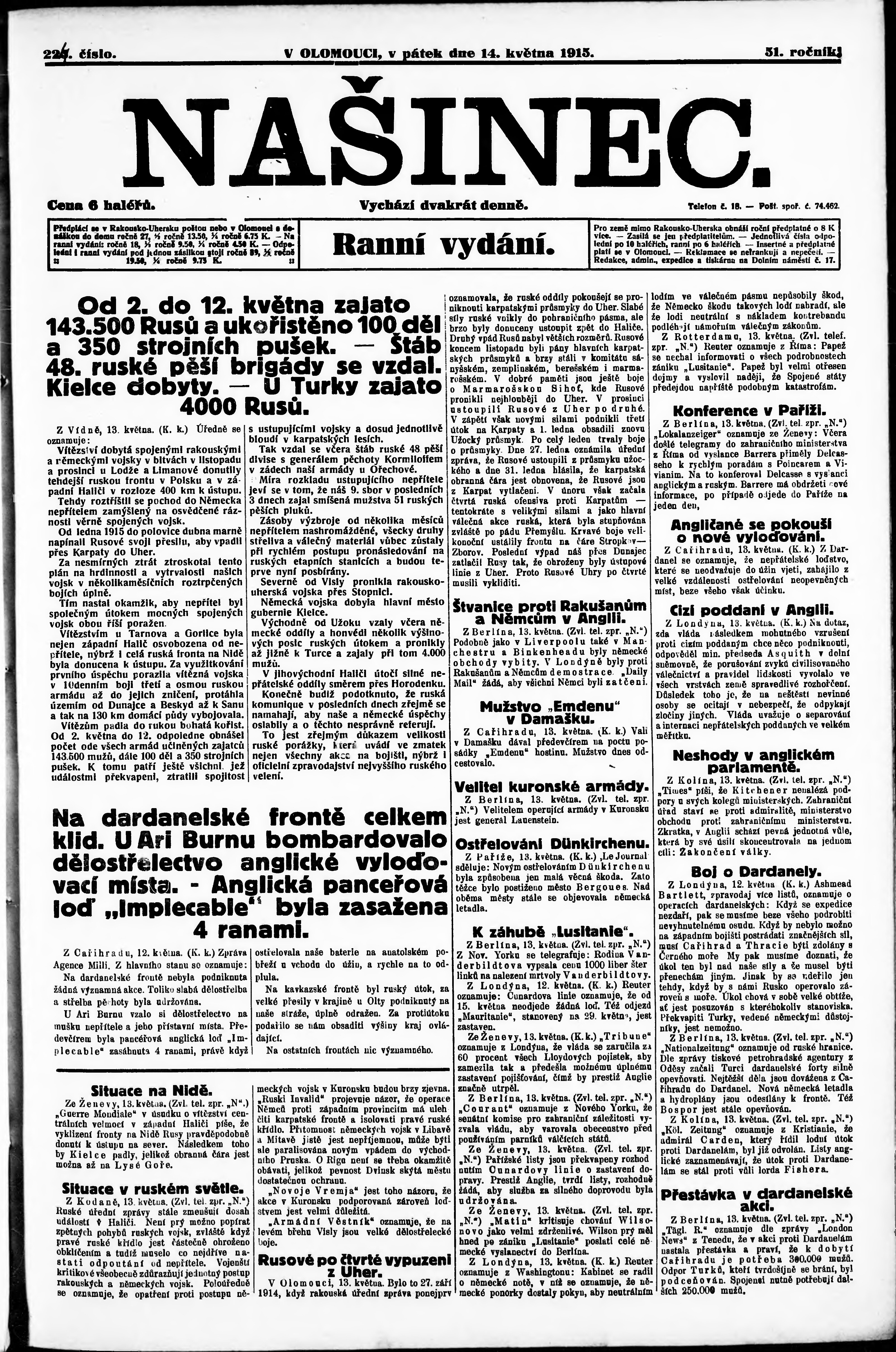 Datum vydání výtisku: 14.5.1915