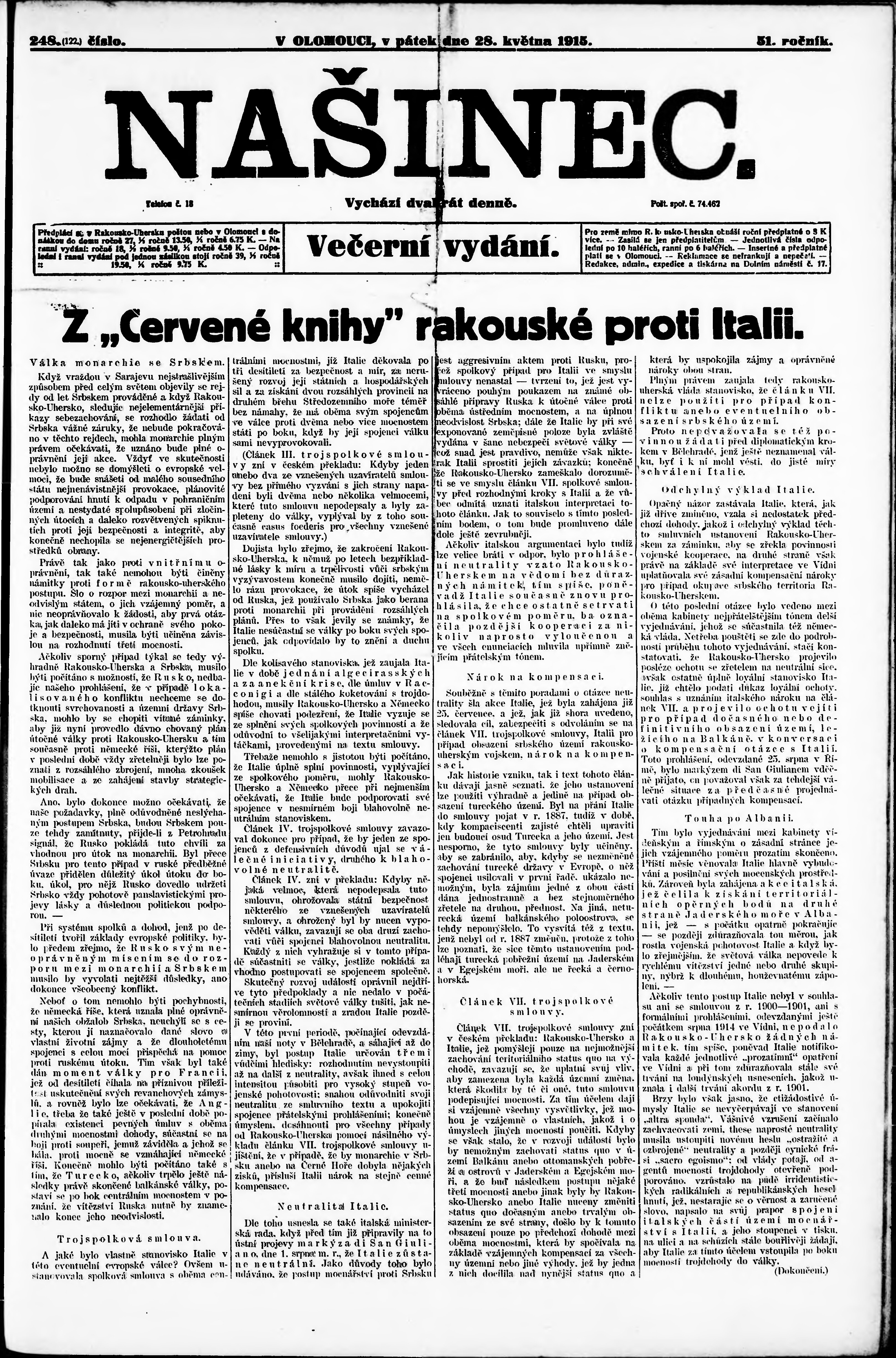večerní vydání;