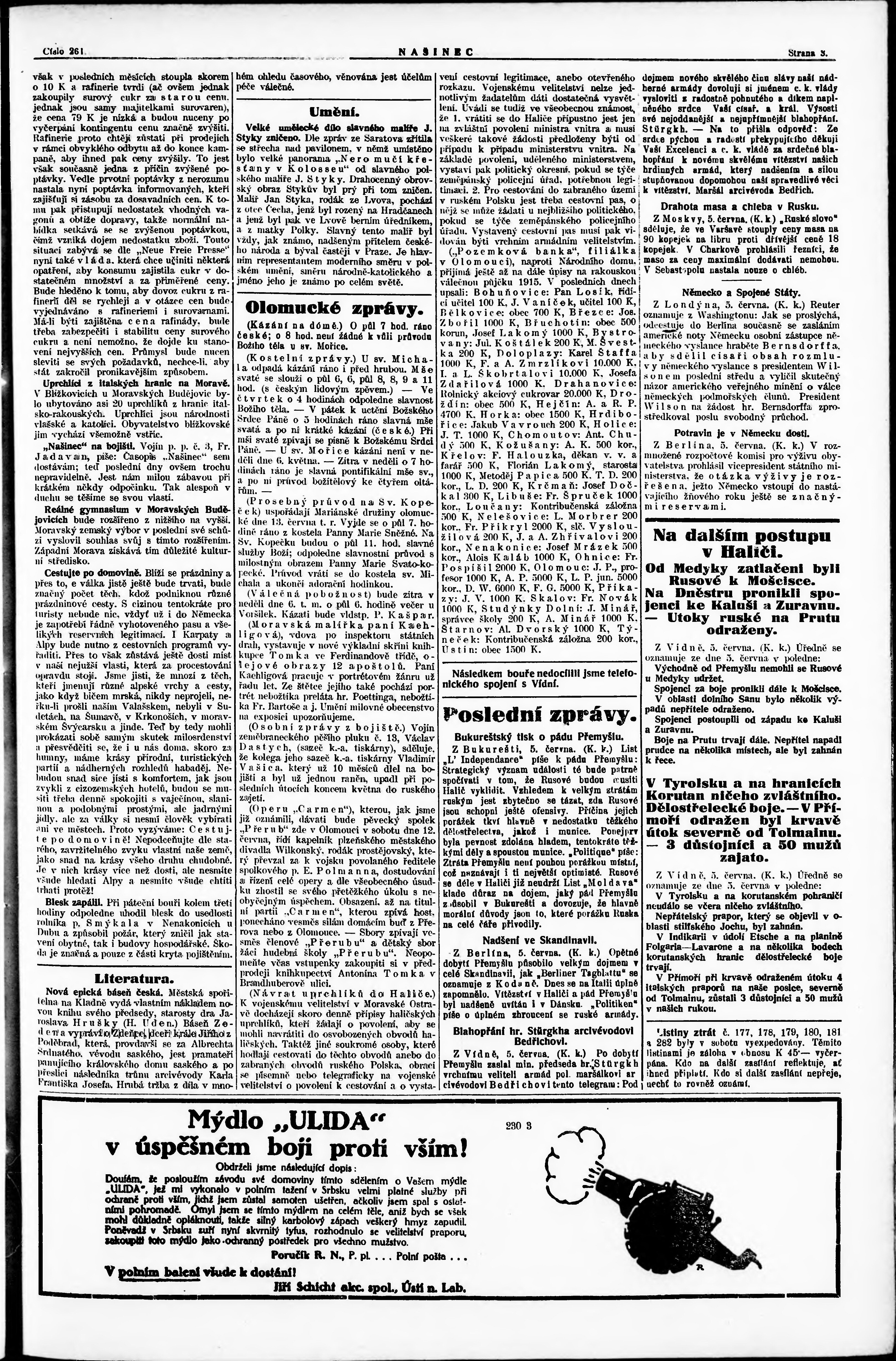 * Datum vydání výtisku: 5.6.1915 Číslo výtisku: 261 Poznámky k výtisku: večerní vydání;