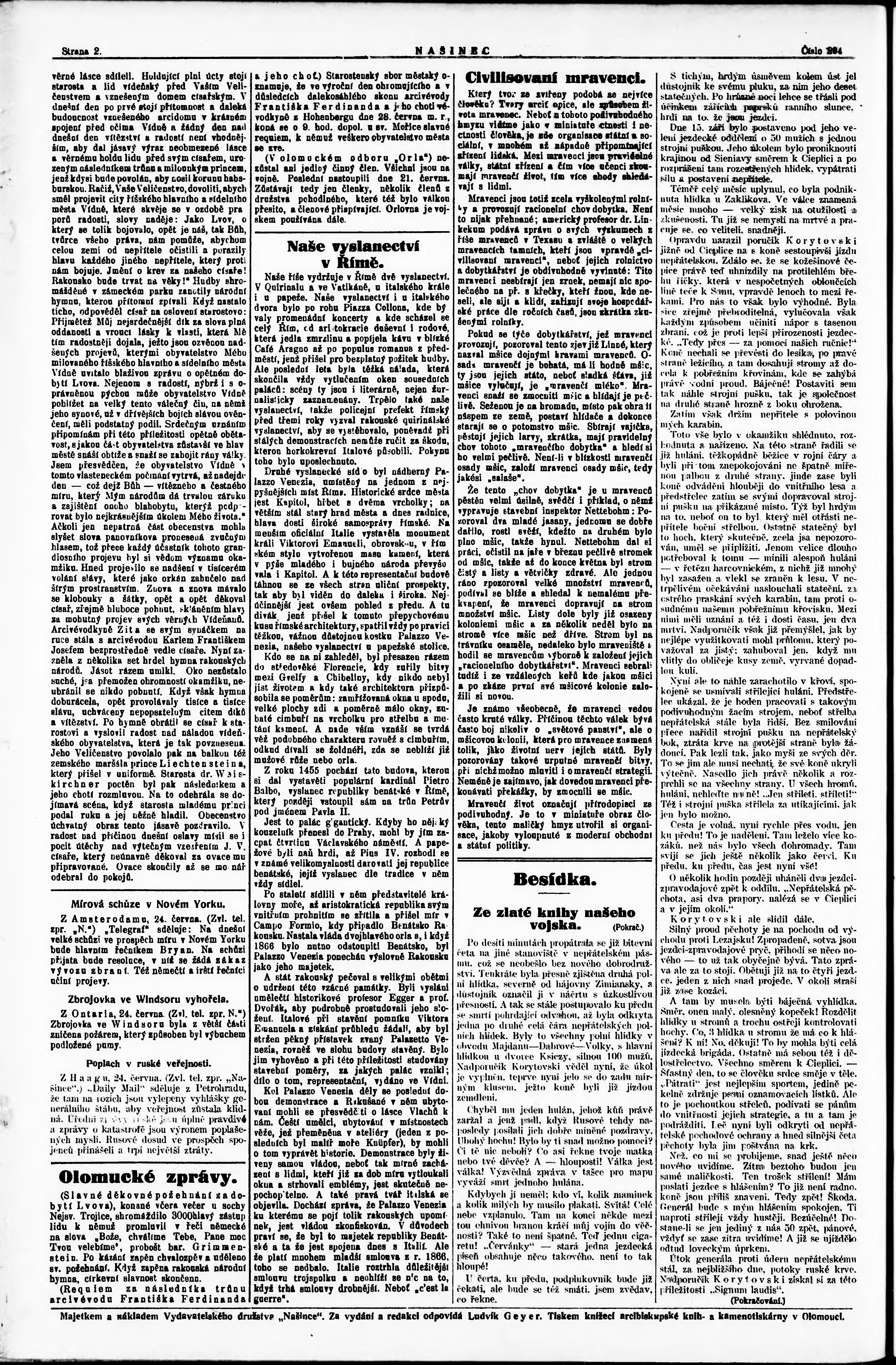 * Datum vydání výtisku: 25.6.1915 Číslo výtisku: 294 Poznámky k výtisku: ranní vydání;