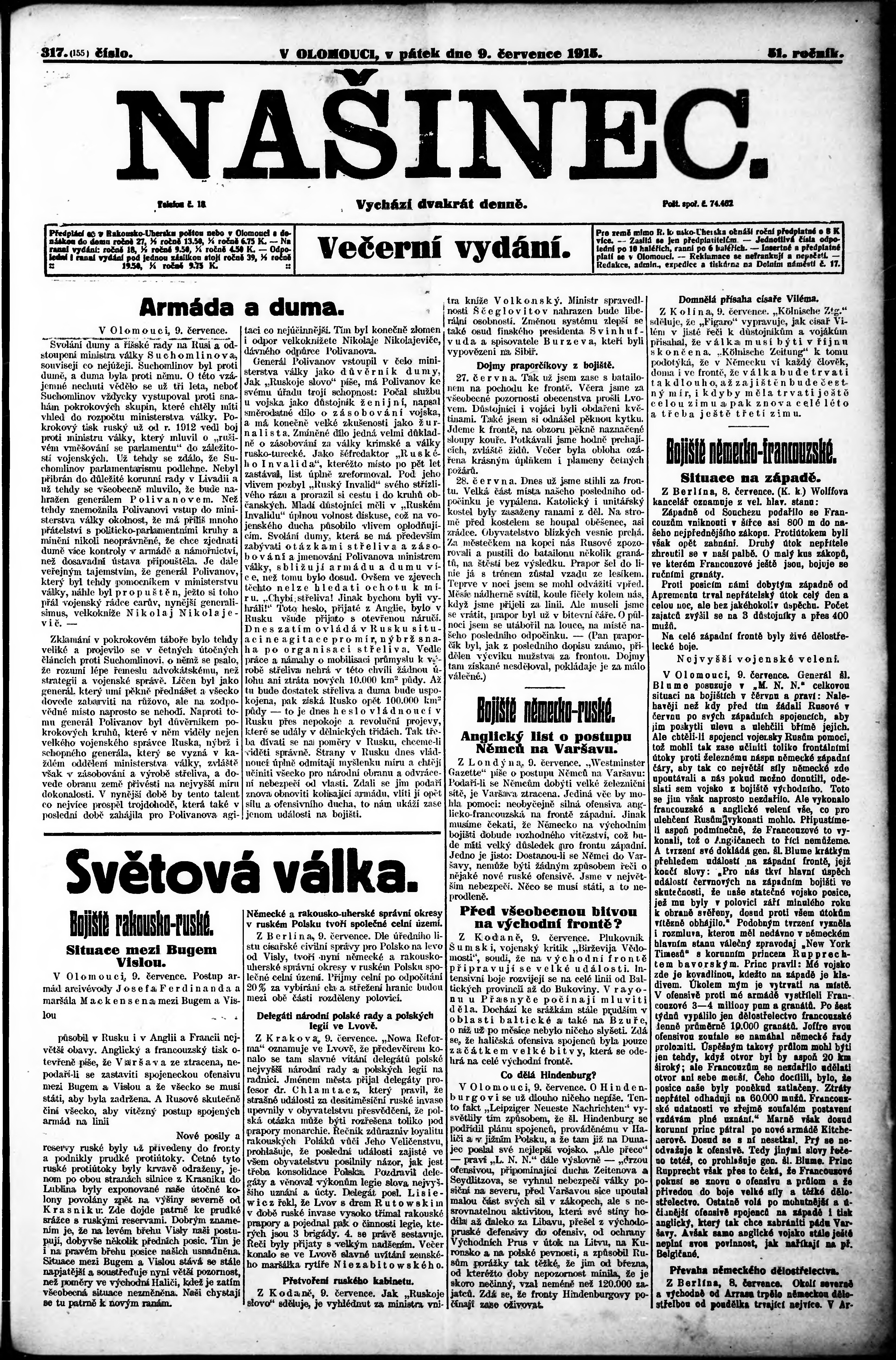 večerní vydání; s. 3 - 4 není k dispozici;