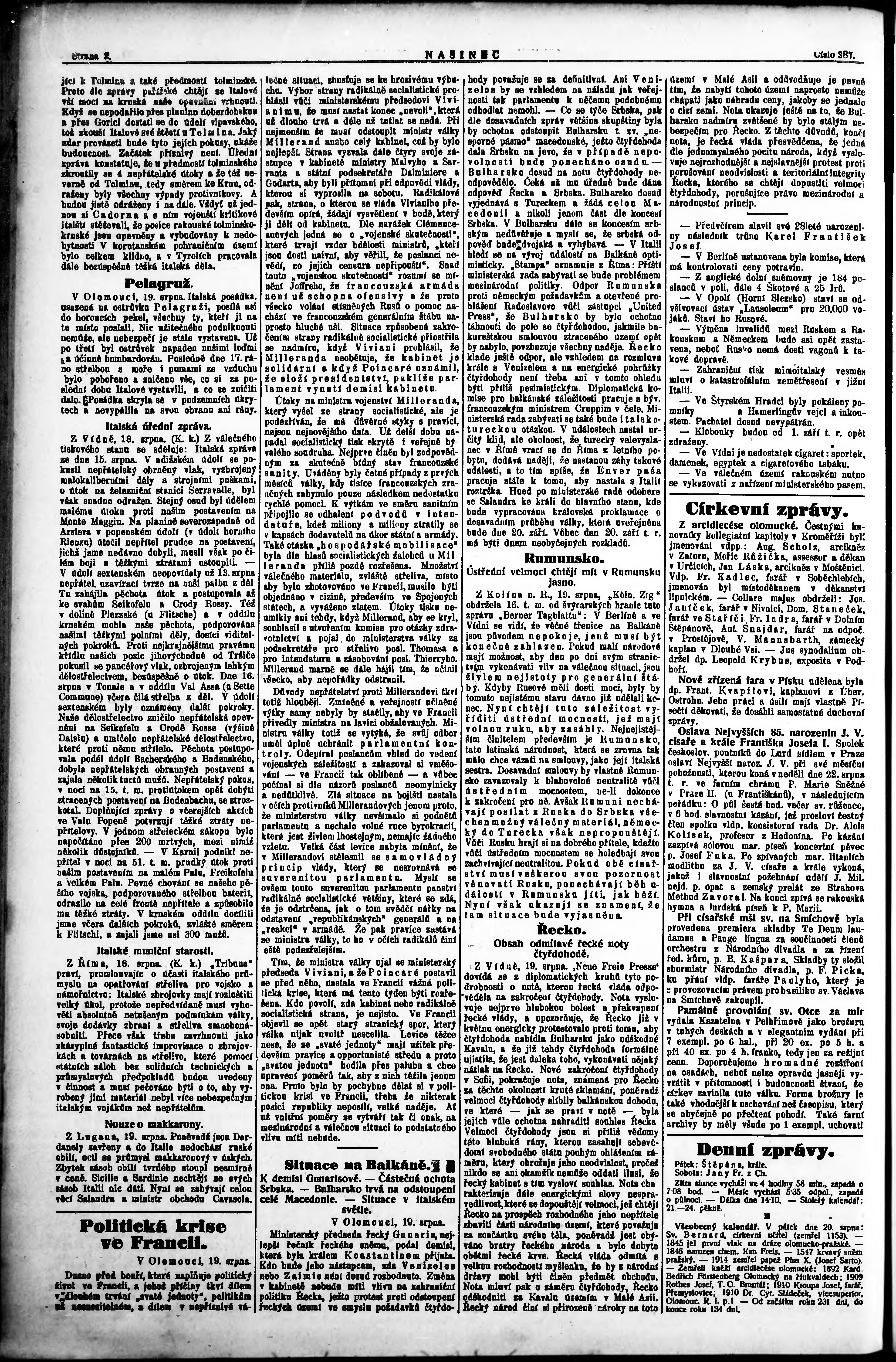 * Datum vydání výtisku: 19.8.1915 Číslo výtisku: 387 Poznámky k výtisku: večerní vydání;