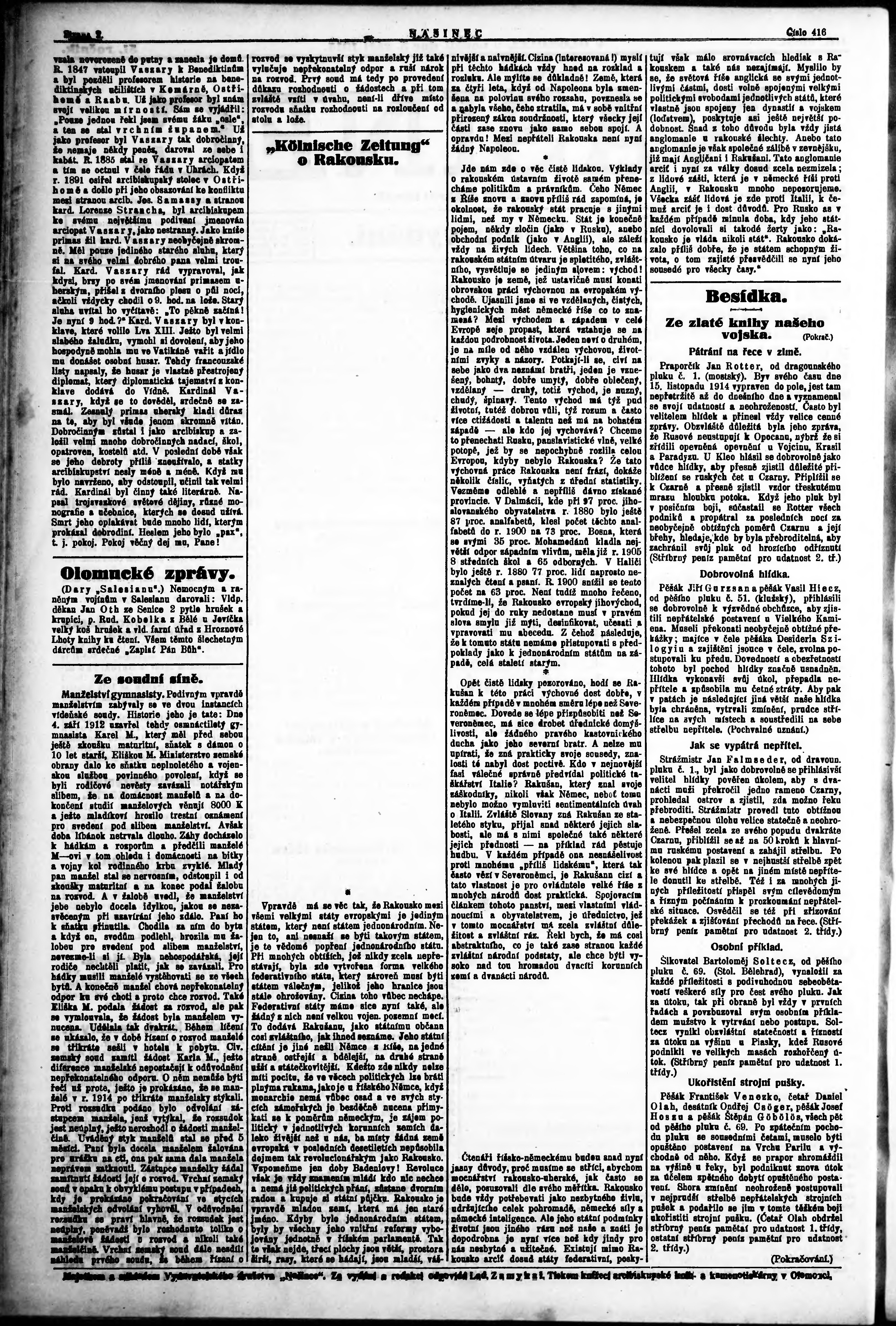 * Datum vydání výtisku: 5.9.1915 Číslo výtisku: 416 Poznámky k výtisku: ranní vydání;