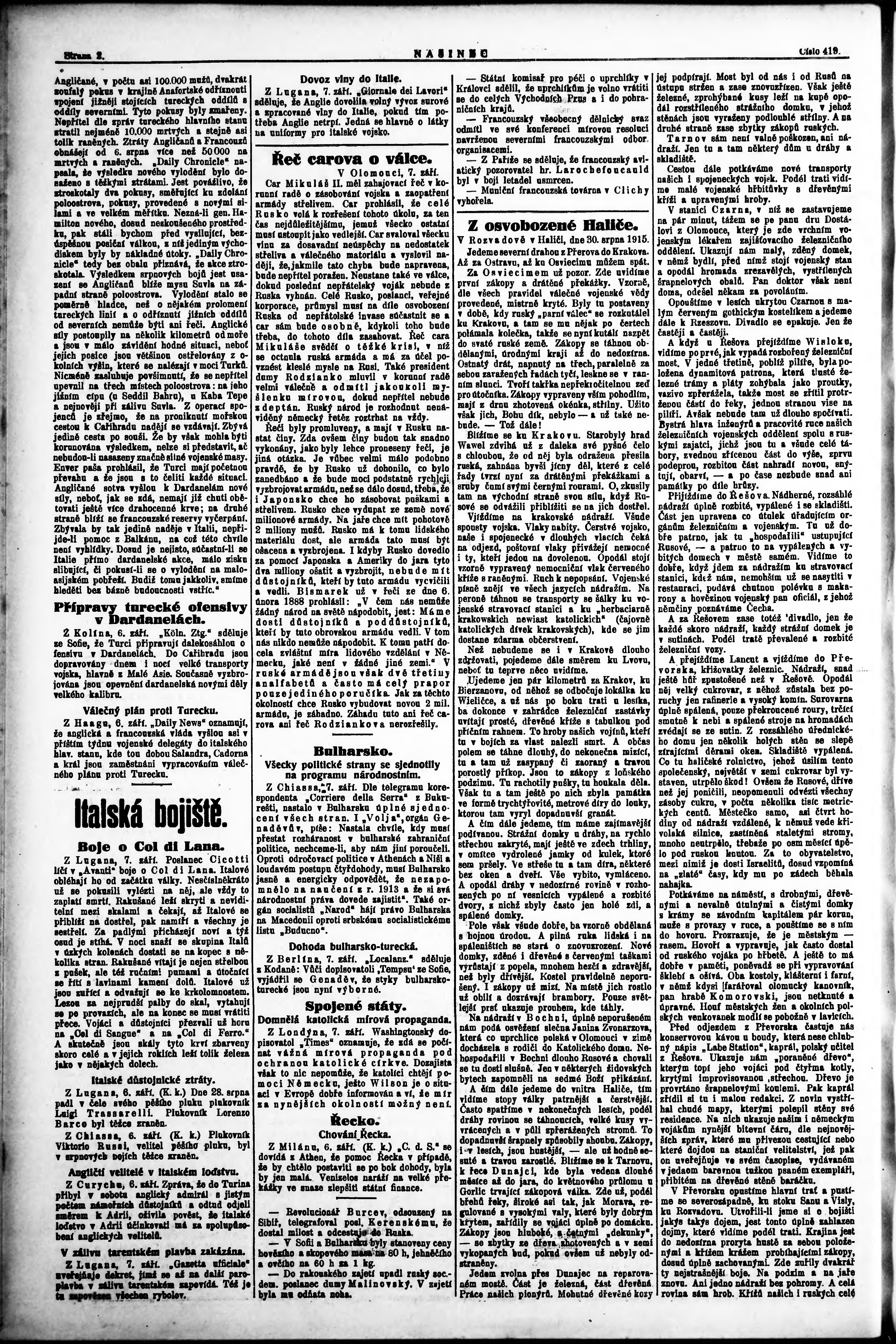 * Datum vydání výtisku: 7.9.1915 Číslo výtisku: 419 Poznámky k výtisku: večerní vydání;