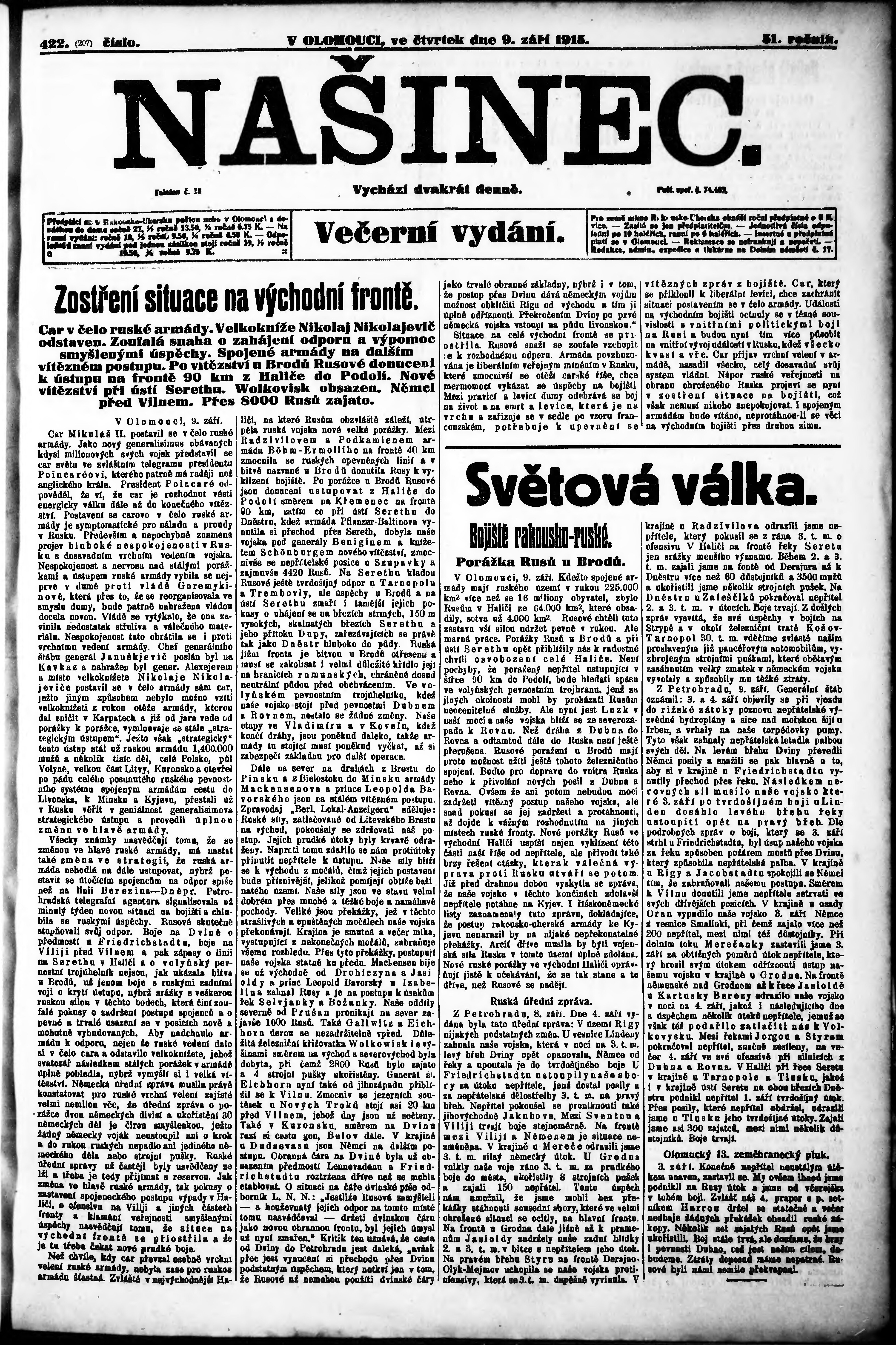 večerní vydání;