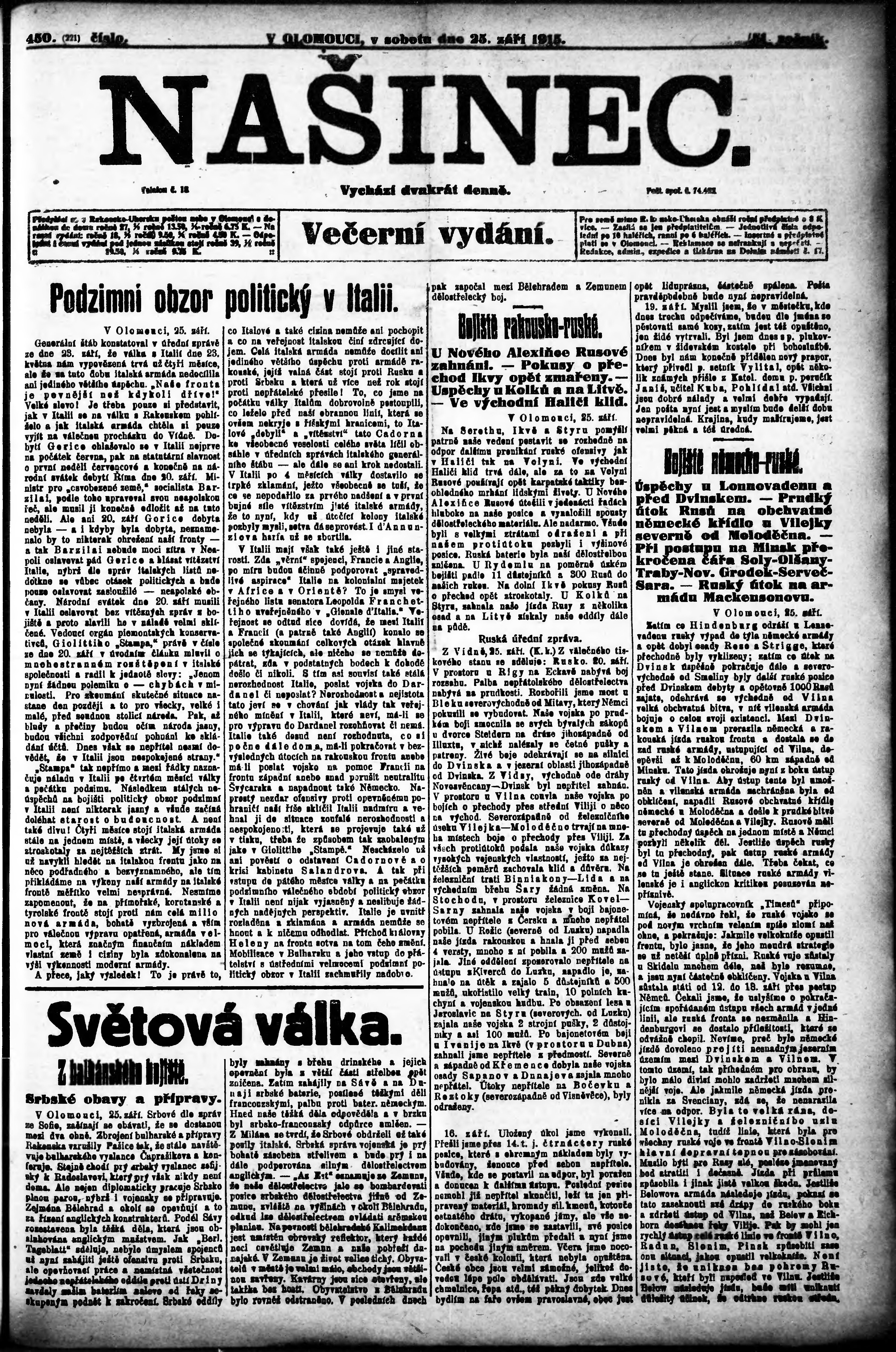večerní vydání;