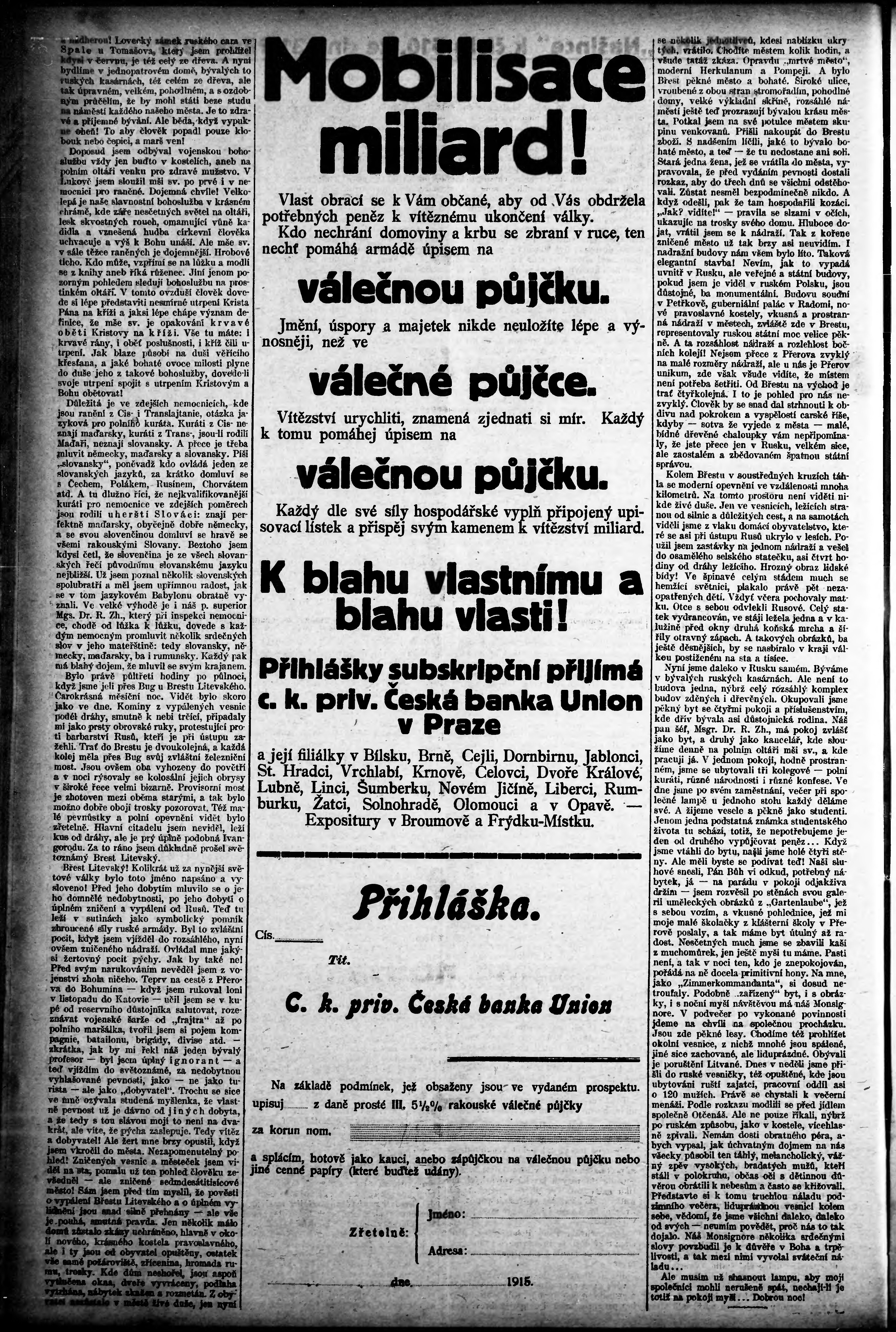 * Datum vydání výtisku: 30.10.1915 Číslo výtisku: 510 Poznámky k výtisku: večerní vydání;