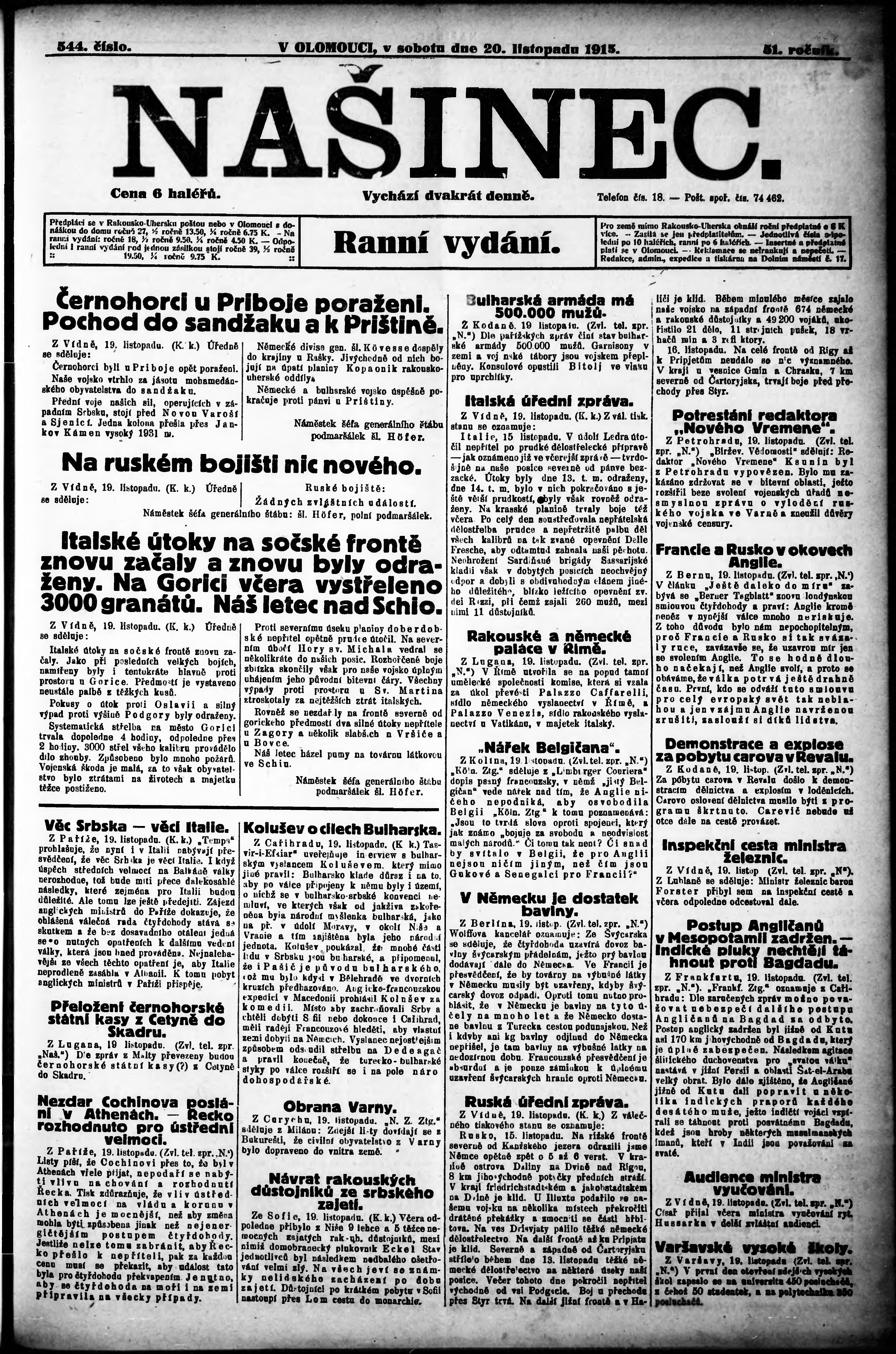 * Datum vydání výtisku: 20.11.1915 Číslo výtisku: 544 Poznámky k výtisku: ranní vydání;