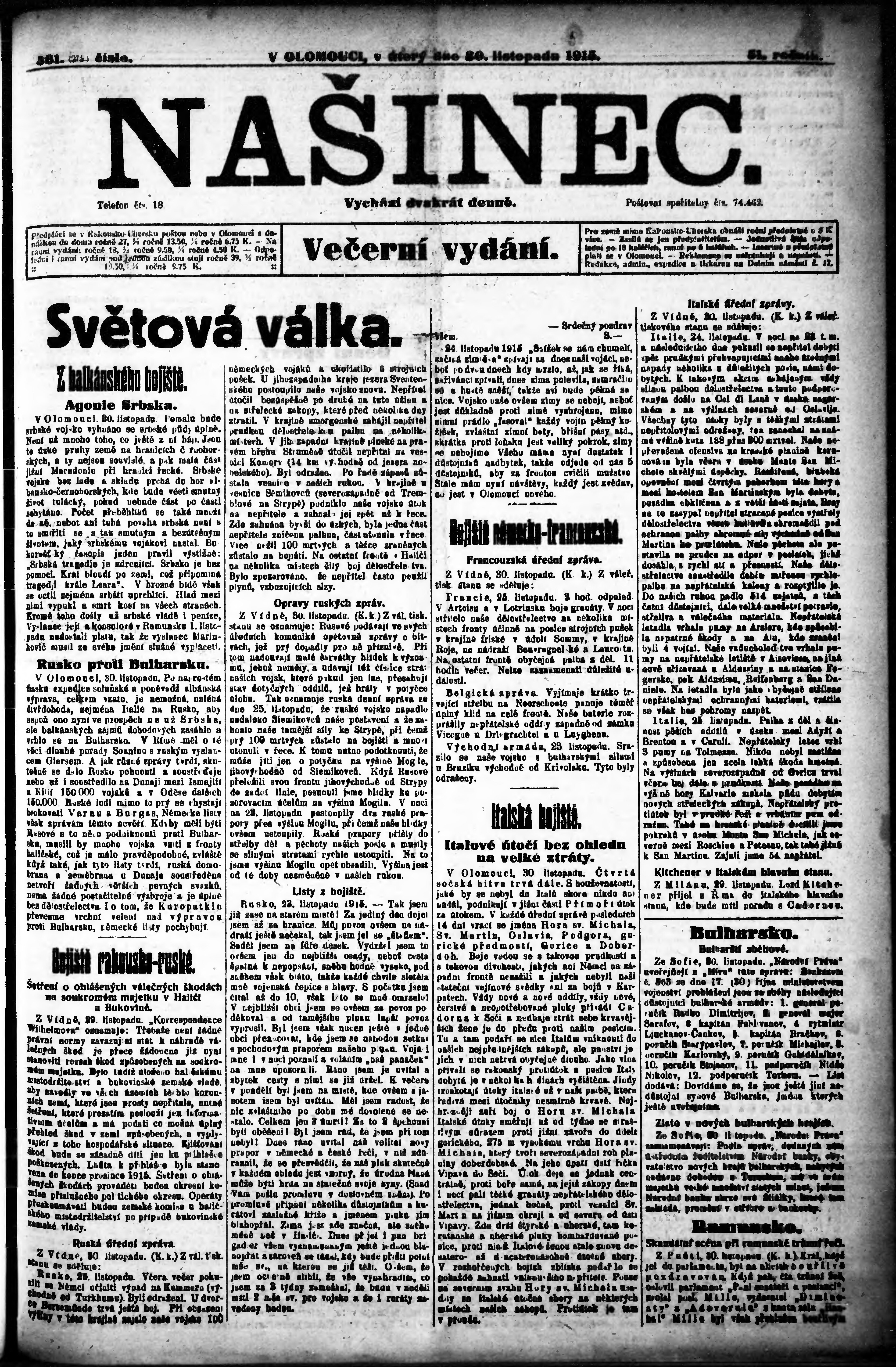 večerní vydání;