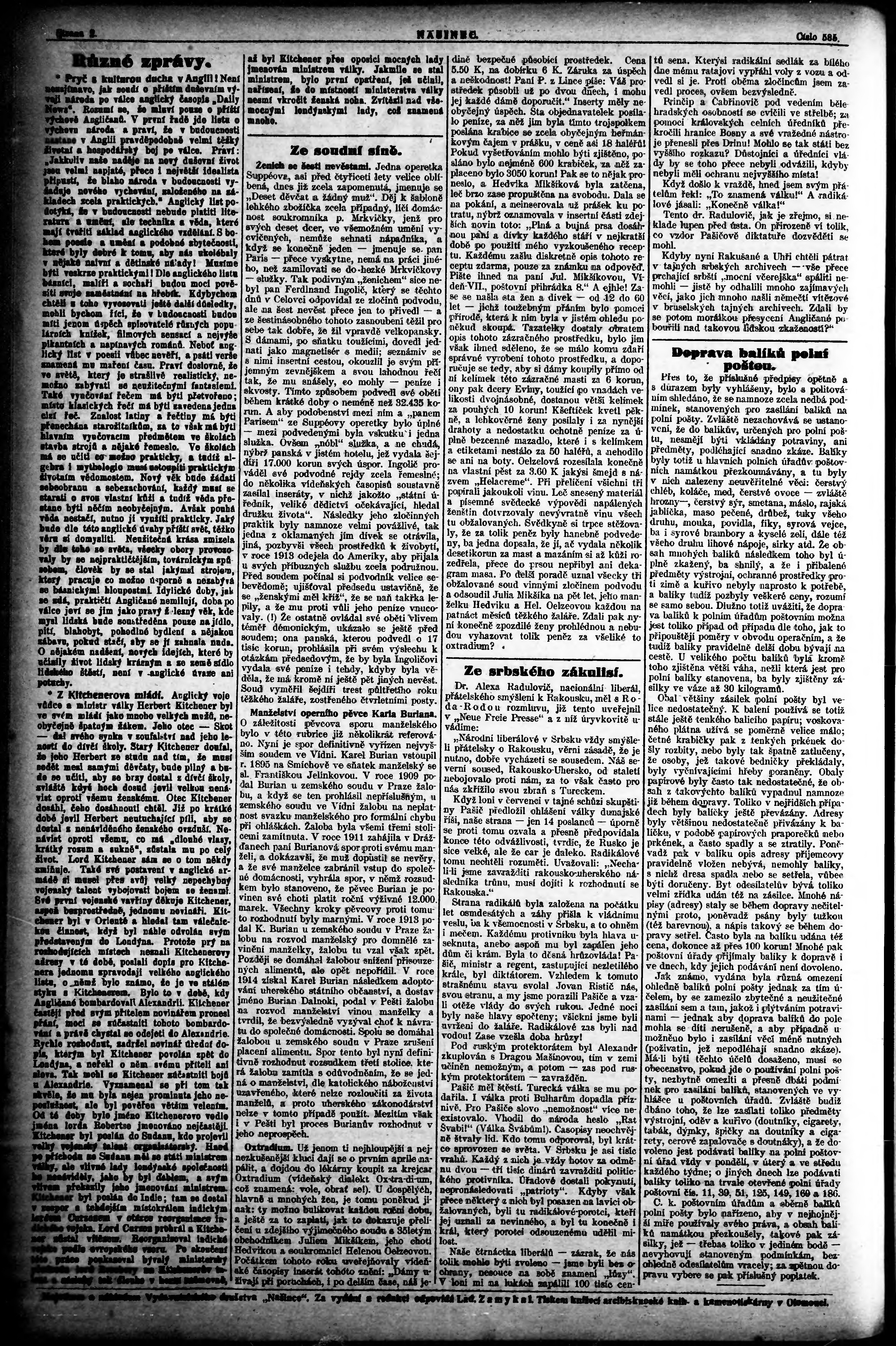 * Datum vydání výtisku: 15.12.1915 Číslo výtisku: 585 Poznámky k výtisku: ranní vydání;