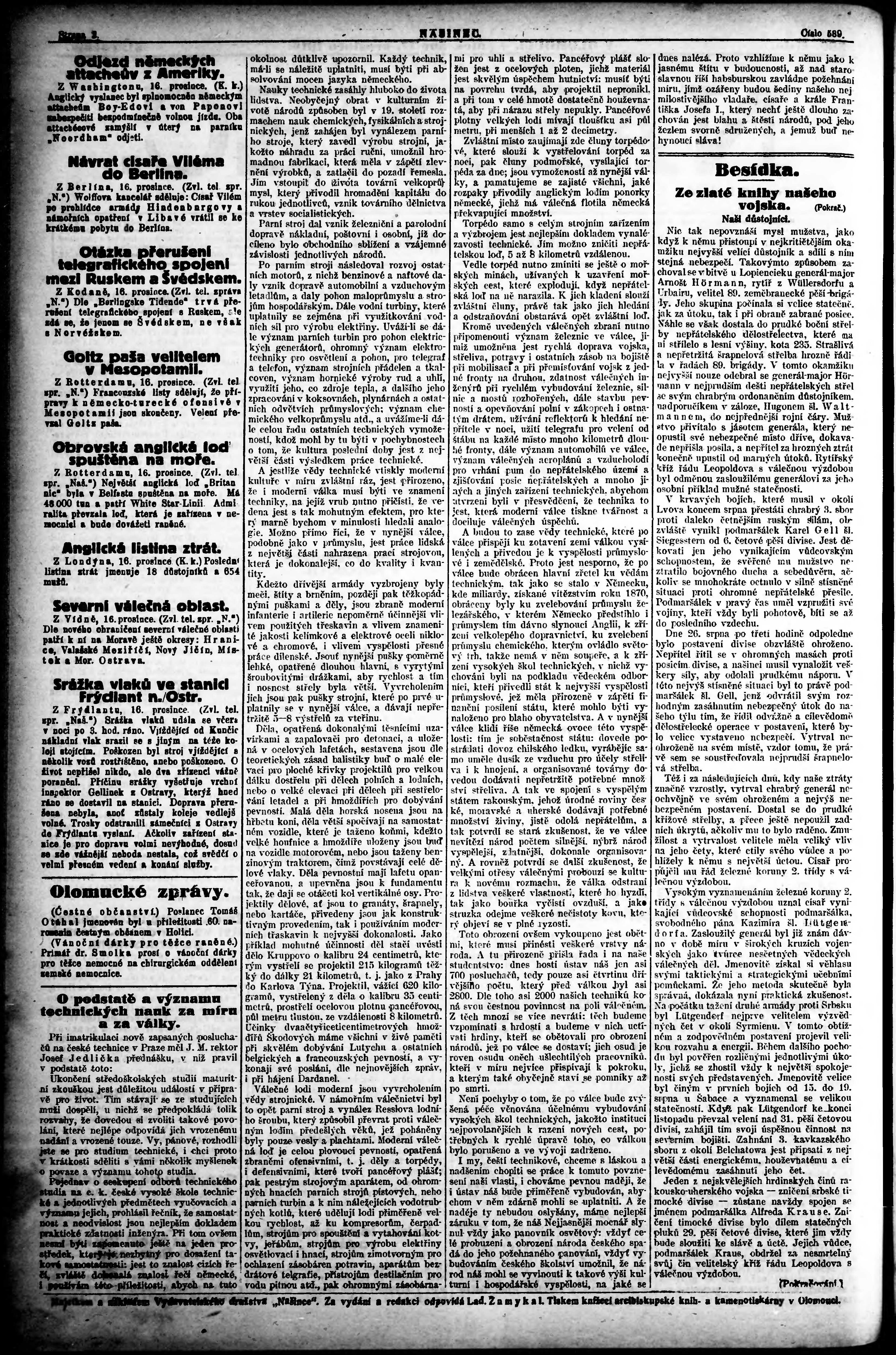 * Datum vydání výtisku: 17.12.1915 Číslo výtisku: 589 Poznámky k výtisku: ranní vydání;